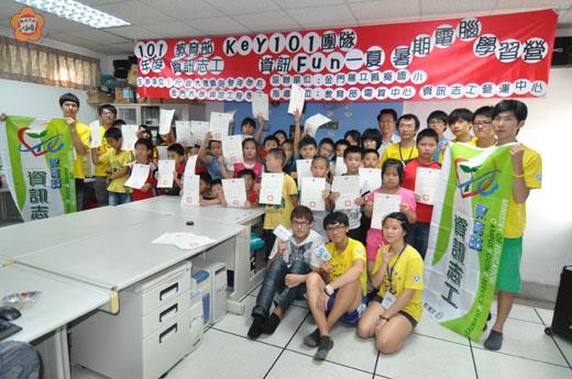 為期三天的賢庵國小「資訊FUN一夏夏令營」活動昨日下午舉辦結營典禮,參加的賢小學生從校長董國正手中一一接過結業證書後,為三天的資訊營畫下句點。參與的小朋友們均表示,學到很多課堂上學不到的新知,尤其樂高機器人組裝更讓他們印象深刻。 這場夏令營由元智大學教授李錫捷帶領元智大學及金門大學共十五位志工學生於賢庵國小舉辦,昨日為活動最後一日,並於下午四時舉辦結營典禮,同時頒發每位參加學生結營證書。 李錫捷表示,這項夏令營活動,用淺顯易懂的方式介紹電腦軟硬體的各種知識與學習電腦相關技能,並以樂高機器人組裝,引發學生學習動機,生動有趣、互動式的教學模式,讓學生體驗電腦的神奇之處。 同時利用循序漸進方式,首日先讓他們學習動畫設計培養美感,同時在志工的引導下,由學生們自行組裝樂高機器人,讓他們從零到有,連啟動機器人的程式設計也是由學生們親自撰寫,並透過分組競賽,讓機器人進行投籃、賽跑,讓他們有親自動手的成就感,另外自由軟體的學習,以寓教於樂的教學,從小培養其對資訊的熱忱。 看到學生的成長,董國正欣慰地說,從樂高機器人的組裝,軟體的操控,自由軟體的學習,看到他們各個興致盎然,盼望以此為契機,啟發孩子對科學知識的興趣。 而學生許以潔及李威漢說,這三天的活動很有趣,機器人的組裝程序讓他們印象深刻,雖然組裝過程,要一直不斷地修正令他們感到相當厭煩,但是當看到自己親手組裝的機器人投籃進球的瞬間,卻令他們興奮不已。