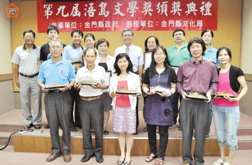 由金門縣政府和金門文化局主辦的金門縣第九屆浯島文學獎頒獎典禮於昨日舉辦,由副縣長吳友欽主持,他頒獎表揚小說、散文與兒童文學類前三名及佳作得主,各得獎牌及獎金三萬元到三千元不等獎金。吳副縣長感謝文友對浯島文學獎熱情的支持,也希望更多文友投入浯島文學園地,在文壇上發光發熱,提供優秀作品與各地文友分享創作心靈世界。 文化局為推廣文藝創作風氣,豐富文學地景書寫,藉由各地文友的島鄉書寫,展現金門地區人文特質與文化采風,進而促進本縣文化與觀光效能。今年第九屆浯島文學獎徵文活動,徵文項目區分為小說、散文與兒童文學三類,主要內容須與金門有關,凡本國國民皆可參加。 浯島文學獎參賽作品由第一屆的四十多件,到今年的一百零五件,台灣地區文友參賽作品達半數以上,顯見浯島文學獎漸獲各地文友青睞與重視。金門縣文化局於昨日上午九時,假該局三樓會議室舉行頒獎典禮,吳副縣長出席主持頒獎,文化局長李錫隆、秘書黃雅芬及藝文界人士,還有「我愛作文夏令營」學員在場觀禮,學員也希望未來能成為一位作家,寫一篇篇膾炙人口的詩篇和好文章共賞。 第九屆浯島文學獎各組得獎作品與作者披露如后: 小說組:第一名陳倚芬(風獅爺的媽媽)、第二名陳韋任(遙遠的慈悲)、第三名吳素霞(阿玲的歸鄉情事);佳作分別為何志明〈霧裡的敵人〉、許國強〈貝蒂的心事〉、陳錦雲〈流水年華〉、楊秀然〈第三件事〉、陳胤文〈浯島烈日當空〉、謝春馨(跟蹤)。 散文組:第一名楊秀然〈帶父親去旅行〉、第二名蔡欣佑〈鴕娘〉、第三名陳英任〈失聲蟬〉;佳作分別為沈政男〈穴居歲月〉、林縈婕〈黑鸛的話〉、許碧霞〈秘境,歷史流沙〉、陳文偉〈失落的珍珠〉、楊文瑋〈小小船兒划呀划〉、沈信呈〈穿過昨日的火花們〉。 兒童文學組:第一名梁正宏〈如果,種子有夢〉、第二名范富玲〈刀天使〉、第三名陳志和〈寂寞的小高粱〉;佳作分別為陳文和〈風獅爺還記得哪些事情〉、陳玉釧〈代理北風爺〉、陳韋任〈分號的誕生〉、謝國爗〈戰地童話〉、王俍凱〈隨鱟而來〉、曹宇萱(風獅爺與黑翅鳶)。 文化局表示,浯島文學獎徵文活動獎額與獎項各類組分別選取前三名,各獲頒獎金新台幣三萬、二萬、一萬及獎牌一座;各組佳作六名,獎金各為新台幣三千元與獎牌一面,以資獎勵。 本縣文化局成立後積極推動各項文化工程,並將發展文學活動成為重要目標,除策劃各種文化叢刊、出版各類圖書、策劃各項藝文活動,辦理「浯島文學獎」更是重要項目之一。吳副縣長表示,浯島文學獎徵選內容特別強調以金門為主,各組皆要求內容須與金門有關,期能藉由文學書寫,增添金門知名度。 吳副縣長感謝文友對浯島文學獎熱情的支持,共同以好文章來共襄盛舉。同時,他恭喜各類文學獎得獎人員和肯定他們的努力付出,讓文學獎越辦越精彩,期待每年都有更多人參與浯島文學獎,提供優秀作品與各地文友分享。