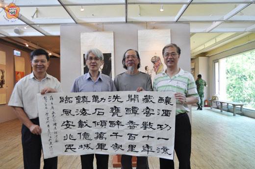 「翰墨飄香 兩島情緣金馬風情書畫展」昨日在連江縣揭展,金門縣七位書畫家五十餘幅書畫作品在南竿民俗文化館藝廊展出三十天,昨日上午並由福建省政府主席薛承泰、金門縣長李沃士、連江縣長楊綏生、馬防部指揮官任季男等人共同剪綵揭幕。藉由書法觀摩交流、相互學習、精進,增進友誼,弘揚中華民族的優秀傳統文化。 金馬風情書畫展昨天上午十一時在連江縣南竿民俗文化館藝廊舉行開幕茶會,由福建省政府主席薛承泰、金門縣長李沃士、連江縣長楊綏生、馬防部指揮官任季男等人共同主持剪綵儀式,福建省政府秘書長侯全寶、前國代陳允火、連江縣副縣長陳敬忠與秘書長及金門與馬祖縣府局室主管及金門縣美術學會理事長楊誠國和地區藝文界人士到場參加藝文盛宴,祝賀展出圓滿成功。 楊綏生指出,今天的馬祖很金門,省主席和金馬兩縣縣府一級主管及馬防部任指揮官等人均到場參與盛會,金馬兄弟的情誼可說是人在一起、心也在一起,特別是省府薛主席上任勤跑馬祖,金門縣美術學會展出,金門縣府團隊參訪,讓今天的馬祖蓬蓽生輝。回想八十九年到金門參訪也和美術學會交流獲贈字畫,如今也將墨寶裱掛起來,這些畫家都用巧妙筆畫出眼見心想的景物。如今盼望很久的作品也在這裡展出,讓今天的馬祖很金門,金馬連在一起辦展覽。 楊誠國也感謝連江縣提供場地讓畫展順利展出,他說,書畫是中華民族的國粹,是中華文化的重要一部分,可以陶冶身心、美化人生、豐富生活,這也是辦理兩地書畫聯展的主要目的,也希望藉由藝文活動來促進文化氣息的提昇。 省府主席薛承泰指出,金馬是兄弟縣,雖相隔兩地卻能在一起展出,尤其美術學會吳大師所書寫的墨寶,可見金門除了有歷史記憶,同時在金馬酒廠在建國百年出產和平紀念酒,薛主席也現場吟了一首詩「釀酒功一流、藏窖數十年、開罈香百里、洗甕醉千家、勒石傾萬軍、鎮海載億城、臨風安兆民」,並由吳大師書寫贈送給馬祖酒廠珍藏,由楊綏生縣長代表接受。 李沃士表示,就職縣長二年多來第一次來到兄弟縣馬祖,今年金馬澎離島運動會將於十月份召開,首先熱情邀請連江縣組隊參加,賽程今年也將擴大舉辦活動,台灣田徑選手菁英賽也將納入,大陸島嶼也邀請共襄盛舉,讓兩岸的島嶼能透過競賽相互觀摩學習,在此也特別邀請連江縣組隊參與。另方面薛主席每次見面都說連江縣有許多經建值得金門來觀摩學習,有關水的部分、聚落的保存,第一天已經請教同時展開實地考察。這段時間剛好金門縣美術學會也到馬祖展出,特別帶領縣府一級主管到場加油祝賀,他說美術學會不管在海外或大陸都將金門帶出去,今天到場參與也很高興。並表示兄弟是越走越親,薛主席說到金馬兄弟縣在建國百年一起合作,未來更要一起合作,更感謝薛主席二年來為金馬爭取許多建設,最後誠摯希望馬祖團隊未來也要大陣仗帶隊到金門交流。 而此次書畫展,展出日期七月四日至八月五日止計三十天,展出大師有楊誠國、吳鼎仁、吳宗陵、徐心富、陳添財、黃國泰、林成族等作品五十餘幅,內容包括書法、對聯、山水、花鳥等主題,作品都是出自金門大師手筆,內容精彩豐富,歡迎鄉親踴躍前往觀賞。