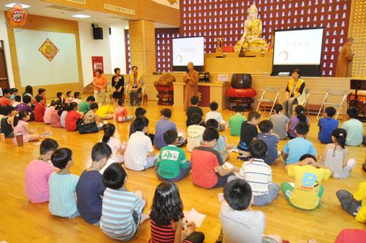 一場由佛光山金蓮淨苑主辦的「三好兒童環保戲劇夏令營」活動,昨(五)日上午舉行開營典禮,在佛光山金蓮淨苑住持釋永勤的開示後,共有一百位地區學子,將在佛光山安國寺佛光青年團的志工帶領下,度過為期三天充滿知性的營隊活動,同時邀請畢業於台大戲劇系的徐宏愷蒞金教導戲劇技巧。 這場夏令營由金蓮淨苑主辦,國際佛光會金門協會承辦,並由佛光山安國寺佛光青年團負責協辦,活動於昨日上午八時四十分舉行開營典禮,由永勤法師主持典禮,現場並有國際佛光會金門協會會長洪永善、副會長林淑桃、秘書余平禧、督導楊惠萍、前金湖國小校長陳麗玉等人到場共襄盛舉。會後並舉行「三好兒童書法比賽」頒獎典禮。 永勤法師於典禮致詞時表示,所謂三好即是「做好事、說好話、存好心」,透過這場夏令營,除將佛法融入其中,也讓學員從團體活動及角色扮演中學習與人相處,尊重自己及他人。利用各項活動提供孩子知性、健康、心靈成長的教育課程,使之親近佛法,養成惜福、感恩的美德,並學習佛教慈悲與智慧。 營隊節目相當多元,開營典禮後隨即展開三天兩夜的活動,首日上午除有青年團帶領大家舞動青春外,還有永勤法師親自教導學員們如何佛門行儀,以沉靜他們內在心靈,下午則有徐宏愷帶領大家,進行「戲遊記─千奇百怪變變變」的精彩戲劇課程。今日與明日更有戲劇、繪畫、大地遊戲、環保筆筒製作等豐富課程。