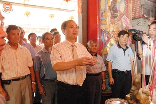 金門城古地城隍廟即將於今日舉辦城隍聖誕千秋慶禮,縣長李沃士昨率副縣長吳友欽及縣府一級主管前往廟中祭祀、獻爐敬金,並焚香祝禱祈求國泰民安、風調雨順。 李沃士是在昨天早上九時許,在副縣長吳友欽及縣府一級主管的陪同下,前往位於金門城的古地城隍獻爐敬金,一行人受到當地議員林孫全、里長陳國林及大老陳世宗、辛寬得的熱烈歡迎。 一行人依古禮向城隍爺行焚香、晉爵、晉牲儀、獻金帛等三獻禮,完成祈福主祭的儀式,並與當地耆老話家常。縣長李沃士表示,古地城隍聖誕千秋慶典至今已六百二十五年,城隍遷治到金城後更促成浯島城隍遷治慶典這項金門地區的最大宗教慶典,帶動地區宗教文化觀光的發展,因此他特別到訪獻爐敬金,表達對古地城隍的感謝。 李沃士也期許古地城隍慶典能在當地村民的帶動下,成為另一項地方觀光特色,邀集到更多民眾參訪金門城這具有悠久歷史與金酒文化的古樸村里,打造當地宗教觀光新亮點。