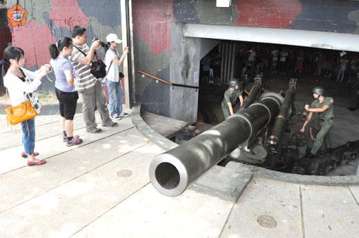 炎炎夏日旅遊季節,受到遊客熱愛觀賞的獅山砲陣地砲操,操演節目時間表自七月份起調整為每日上午兩場、下午四場,總共六場,期讓來到金門的遊客體驗砲操的震撼力及戰地文化特色。 縣府交通旅遊局公告表示,位於金沙鎮的獅山砲陣地砲操操演節目時間自七月一日起調整為每日上午兩場,操演時間分別在上午十時、十一時;下午四場,操演時間分別為下午一時三十分、二時三十分、三時三十分、四時三十分,總共六場的砲操操演節目,展現金門的戰地特色,更彰顯景點的歷史價值,歡迎前往觀賞。 活化軍事觀光資源,是金門縣政府致力開發和經營的重點施政,也期金門觀光最引以為豪的戰地特色,讓地方觀光發展邁向新的里程碑。而,獅山砲陣地除有靜態的展示、砲操表演,展現軟實力外,坑道外還有各種國軍使用過的火砲展示;其中,在入口處有二個仿真人製作的蠟像衛兵站哨,當有人車經過入口,會很盡責的喊:「敬禮,長官好!」值得合照留念。 據了解,獅山砲陣地位於金門東北角的五虎山,起建於民國54年,為全國唯一坑道式砲陣地,坑道名「震東坑道」,取「威震金東」之意,是在花崗岩開挖,全長約五○八公尺,共有四個砲堡,原本部署四門八吋榴砲,負責金門東北部海域安全。