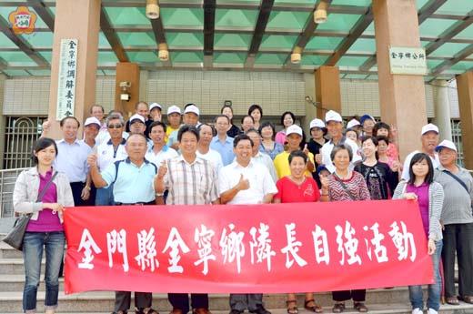 金寧鄉公所昨日舉辦金寧鄉101年鄰長自強活動,走出戶外,暢遊金門東半島風情,晚間鄉長陳成勇「辦桌」宴請全體鄰長,副縣長吳友欽代表李縣長前往致意,感謝鄰長們長期協助各項縣政建設順利進行,同時慰問一年來服務辛勞。 金寧鄉公所101年鄰長自強活動於昨日下午舉行,由金寧鄉長陳成勇帶領各村鄰長分乘二部遊覽車出發,前往文化園區、獅山砲陣地、民俗文化村等地參訪遊玩,認識金門軍經建設;在參訪途中鄉公所也利用時間進行相關法令與政令宣導,更落實為民服務。 晚間聯誼餐會,金寧鄉全體鄰長在海洋餐廳接受鄉長陳成勇「辦桌」款待,感謝鄰長們長期協助各項縣政建設順利進行,同時慰問一年來服務辛勞。副縣長吳友欽、縣府民政局長翁伸金、金寧鄉公所秘書傅仰鑫和調解委員會主席李國平,以及鄉公所各課室主管、行政服務人員、各村村長均與會和鄰長聯誼,對他們的服務基層民眾和協助推行政令,表示慰勉和肯定。 吳友欽感謝鄰長們長期協助各項縣政建設順利進行,同時慰問一年來服務辛勞。並指出縣府參加全國各縣市幸福城市的成績榮獲第一名,這是鄉親大家共同努力得到。他說李縣長任職二年來,主要目的是要提供鄉親更好福利與服務,凡事秉持著歡喜做、甘願受,才能獲得鄉親大力支持。李縣長說過要給金門未來有更好發展,鄉親的福利更好,即使非常困難的事情也要努力來完成,全天候為鄉親提供服務,為鄉親的需求協助尋求解決,特別提出「1999」專人服務電話協助鄉親解決問題,希望最基層的鄰長如發現村民有需求、困難,就可撥縣府聯合服務電話請求協助。 陳成勇感謝鄰長們站在基層第一線服務,協助村長宣導縣政建設與政策、推動登革熱防疫、掌握社區民情與治安狀況,感謝鄰長們的辛勞與付出,使各項建設得以順利推動。他表示,自上任以來推動「請安、奉茶」的服務工作,並秉持著「清廉、紀律、創新、效率」的施政理念,主動積極提供各種服務,為鄉親分憂解勞,協助解決問題。