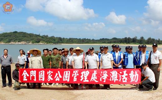 金門岸巡總隊等單位,配合金管處於馬山海濱淨灘,與金門國家公園、金沙鎮公所清潔隊、環保志工、金門防衛指揮部等約三十人,清除漂流木等各大型垃圾約六百餘公斤,還給遊客乾淨整潔的環境。 (圖片由金門岸巡總隊提供)