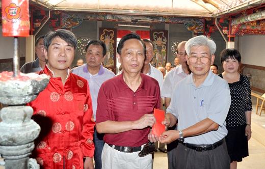 福建省江夏黃氏源流研究會泉州辦事處會長黃種都,率各地代表共二十四人,赴台參加兩岸論壇,結束後特別擇定昨日上午前往后浦頭黃氏家廟祭祖,緬懷祖德。 黃種都等一行二十四人,包括副會長黃水棟、黃種例、黃東獅、黃美玉、副會長兼秘書長黃奕翠等人,昨日上午九時至后浦頭黃氏家廟祭拜紫雲始祖,受到金門縣黃氏宗親會、后浦頭黃氏宗親會以及金門各地黃氏裔孫之歡迎。 黃種都也代表獻爐敬金並指出,期許各地族裔能透過更多的交流活動,聯繫情誼,團結和諧,弘揚祖德,代代傳承。