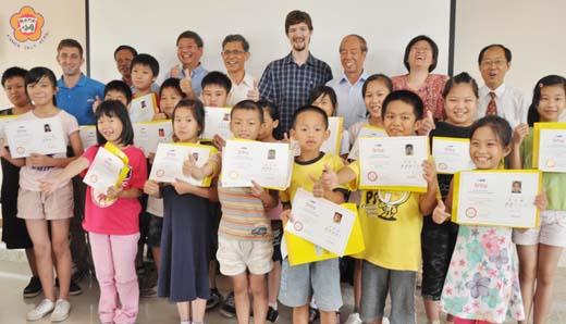 開瑄國小自九十九學年度起開辦為期三年的雙語試驗課程,昨進行第二年試驗成果發表,會中表揚今年五月金門第一場「STYLE/JET兒童英語分級檢定」績優學童,一百二十三位參加檢定,有超過八成通過,不乏跨級挑戰成功者。副縣長吳友欽表示,學習不能等,若試辦成效不錯,教育局可思考及早規劃,於各鄉鎮設置一個中心點,讓更多人有學習機會。 開瑄國小昨日下午二時起,假視聽室辦理「一百學年度提昇國小學童英語能力試辦計畫成果發表暨研討會」,副縣長吳友欽、教育局長李再杭、開瑄國小校長李錫南、金大應用外語系主任范仲如及家長等出席。首先由李校長介紹計畫背景及第二年執行情形並指出,今年五月參與師德文教機構辦理的兒童英語檢定,一百二十三人自由參加,超過八成通過。 副縣長吳友欽頒獎表揚通過測驗的學生並表示,開瑄國小雙語試驗課程,試辦第二年成果豐碩,發表會應該擴大讓各級學校相關人員出席活動。即將邁入第三年的試驗課程,相信在即有的基礎上能有正面的成果。如果成效不錯,教育局應可思考儘早做推廣,於五鄉鎮各設置一個中心點,援引開瑄試驗成功例子,擴大推廣語言學習。因為,金門身處兩岸樞紐位置,配合觀光發展,國際語言的推動更顯重要,若能從法規層面獲得雙語學校之解套,對金門而言是一大利基,更能讓孩子不輸在起跑點上。 開瑄國小參加師德文教、金門大學合辦的「STYLE/JET兒童英語分級檢定」一百二十三人參加,超過八成通過。其中,第二級和第四級通過率為百分之一百,共計有許韶云、蔡佳桓、蔡語儂、蔡佑德、蔡卓頻、洪浚宸、許繽等七位平均分數超過第三十五屆全國第四級通過考生平均分數,第三級通過率超過九成五;更值得一提的是,二年級學生許菡容、范栩潔挑戰第三級檢定通過,一年級學生洪照翔聽力成績滿分,表現十分亮眼。 四年級學生許韶云表示,雙語課程生活化、容易進入狀況,比較敢開口和外師說英語,尤其每逢節慶還能學習歌曲和做相關的體驗,十分有趣。駐校外師LUCAS指出,英語是生動的語言,除了從動態、遊戲、生活、歌曲中訓練學生的聽說讀寫能力外,更重要的是讓學生知道他們可以說英語;第一年駐點同一學校做教學,非常樂見學童的進步;未來要思考克服課餘時間授課學生的疲態和認真程度。 學校老師表示,雙語實驗課程,外籍老師駐校教學,平均每個人每週增加五至六小時的學習時間。晨間、課餘之外,每週每班還會分組,由外師出題,三人一組做十五分鐘的主題會話,學生藉此學習多元文化;再加上寒暑營、體育融入英語、補救教學等學習,更有助於學生自然地接觸英語。 在昨日的發表會中,金門大學應用英語學系助理教授楊慧美也做開瑄雙語課程第二年成果報名;英語輔導團召集人楊成業校長也於研討中提出許多寶貴意見。