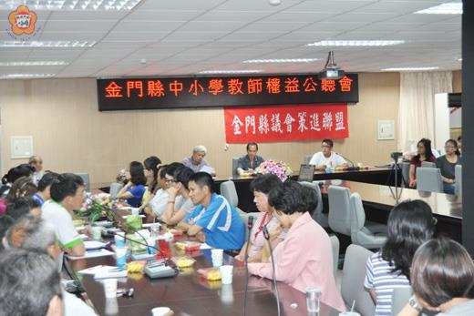 國中小學教師因課稅配套教師減少授課時數後教師員額不足,而幼兒照顧及教育法實施後人員配置,產生許多與實際需求衝突的情形,縣議會跨黨策進聯盟昨日特別邀請縣府教育局長李再杭與教師與家長代表面對面交換意見。召集人林金量議員希望縣府能考量地方的特殊性並有創新的作法,將教師與家長的看法納入政策來考量與參考,議會也會全力來支持預算的編列。 金門縣議會跨黨策進聯盟接獲金門縣教師職業工會以及金門縣金城幼稚園教師代表陳情,並於昨日下午4時40分至6時40分假議會綜合大樓二樓會議室召開「金門縣中小學教師權益公聽會」。由召集人林金量議員主持、議員陳滄江、周子傑,及縣府教育局長李再杭、課長謝惠婷與金門縣教師工會理事長陳世聰及國中小、幼稚園的教師與家長代表,面對面交換意見。並針對教師提出的問題當場做出回應。 昨日會中,金門縣教師工會理事陳來添在「提昇教師編制,健全師資結構」簡報中也指出,100年度軍教課稅後,教育部為優質化國民教育,國中小教師課務調整,而形成教師嚴重缺額,全國預計缺額15000人。101學年(101年8月),金門預計缺額近95人(國小64人,國中31人)。而增聘專長教師,健全師資人力結構,是所有家長與教師的共同訴求。 李再杭指出,有關教師課稅配套教師減少授課時數後教師員額不足問題,上(5)月31日議會第四審查委員會召集人許玉昭偕同議員召開座談會,除了縣府教育主管,包括金門縣教師工會理事長陳世聰、教師代表出席參加,座談會中也研議多項解決方法,縣府非常重視,該努力的都已經在做,有些則牽涉中央教育政策,縣府也會持續努力來協調爭取,而牽涉地方政府預算的問題,必須財政主計單位的支持。 李再杭也提到本月7日教育部長蔣偉寧與立委來金考察時,當天在金門大學召開座談會時,縣府也將問題向部長反映,請教育部能考量本縣離島,補助代理教師經費,以符實需。 李再杭說,對於教師的權益問題,教育局是與教師站在一起,幼托整合,關於教師基本權益問題,也是站在大家的立場來思考。 教師工會理事長陳世聰指出,地方財政不錯,在中央法規下,仍有因地制宜的空間,針對特殊性的問題研擬「自治條例」,希望在議會的支持下,由縣府編列特別預算來補助不足,讓老師可以專心輔導備課,這是地方可以施力的地方。 議員周子傑指出,縣府每年編列好幾千萬元補助金門大學,而地方的國中小及幼教更需要,沒有國小國中,哪來的大學,希望教育局利用暑假研擬可行的方案及編列預算,由議會召開臨時會來審議通過。 議員陳滄江指出,教育是百年大計,是金門的核心根本,金門是最幸福的城市,教育政策不能太刻板,針對教師的權益,他建議教育局研訂相關自治條例,於下會期將案子送到議會來審議。 議員林金量指出,對教師權益的預算編列,議會扮演橋樑角色,會全力給予支持,希望問題可以很快獲得解決,教育局對於地方教育需求應該考量地方的特殊性,思考如何以什麼方式來提昇創新。