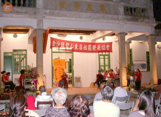 端午佳節,你包粽子我唱樂。金門縣浯江南樂研習社昨在睿友學校演出,成員透過齊趾、清唱、小組合唱等演釋十五首曲目,在傳統節慶欣賞傳統南樂,別有一番風味。 碧山東店社區發展協會上週邀請來自美國的樂團配合端午節活動登台獻藝,昨日端午節更邀請到金門縣浯江南樂研習社到睿友學校演出,讓社區以及鄰近村落居民,甚至返鄉過節的鄉親,能一睹傳統南樂之美。縣議員陳滄江也到場參加。 金門縣浯江南樂研習社由理事長陳亞福、指導老師吳淑珍帶領下到睿友學校演出,從齊趾(大合唱)到清唱、對唱、小組合唱等,共演釋「直入花園」、「懶繡停針」、「拜告將軍」、「不覺是夏天」、「霏霏颯颯」、「偷身」、「一生愛到君鄉裡」、「聽見雁聲悲」、「七月十四」等十五首樂曲。其中,家住碧山現年七十餘歲的黃秀卿也清唱「班頭爺」,表情豐富、嗓音清亮,讓居民非常感動,即使難懂南樂之精髓也能隨其樂聲而融入。 碧山東店社區發展協會理事長陳國琍也表示,自睿友學校開幕以來,社區持續推出各類活動,目的在讓修復完成的古蹟,除了觀光功能外,更能展現學校、藝文空間等功效。 陳國琍也指出,近期從各個團體的表演發現,漸漸地為居民帶來音樂、藝文的刺激和啟發,特別是睿友學校和前庭是一個很棒的演出舞台,因此,未來將與社區一起努力,把睿友學校營造為金東地區的藝文展演中心,讓金門的藝文活動也能到金東展出,彌補東西城鄉差距。