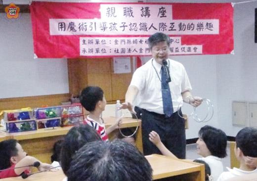 「用魔術引導孩子認識人際互動的樂趣」親職講座日前舉行,講師賴幸輝現場示範魔術,分享它不只可以增進人際互動,也能融入生活,更能達到公益關懷之目的。 金門縣婦女福利服務中心辦理一場「用魔術引導孩子認識人際互動的樂趣」親職講座,由金門縣婦女權益促進會承辦,活動邀請台展技魔術創意工作室負責人賴幸輝主講,做魔術示範教學。 活動共吸引百位親子參與,擠滿社福館第一會議室,反應十分熱絡,賴幸輝傳達給親子的是,將魔術的趣味融入日常生活中,不僅可以娛樂大眾,更能帶來生活上的歡樂,增進人際關係,滿足求知慾望,也能建立自信心。 此外,他也分享個人積極投身公益關懷的經歷,伴隨社會高齡化,魔術也能向樂齡學習發展,為生活帶來更多趣味。