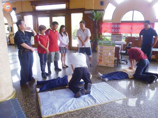 因應地區觀光發展,金沙消防分隊,前往轄區三間飯店展開CPR訓練,傳授飯店從業人員新版心肺復甦術,以期提昇旅遊從業人員急救技能,當患者遇上突發性心肺功能停止等緊急情況時,能夠在事故發生第一時間,給予適當急救處置,及時獲得搶救。 伴隨地區觀光發展以及開放小三通以來,遊客大幅成長,根據消防局統計,歷年不乏旅客於住宿飯店內突發心肺功能停止之情況,有鑑於此,金門縣消防局推動相關旅遊從業人員CPR學習計畫,讓來金之遊客,獲得最佳的救助服務。 金沙消防分隊配合消防局之政策,因應地區觀光旅遊逐年增加,由隊員張陸強、陳俊源,鳳凰志工蔡森群、王仲強等前往轄區台金、金沙湖畔、金沙湖濱三間飯店展開為時兩小時之新版心肺復術訓練(CPR)。 金沙消防分隊分隊長陳奇指出,現行CPR口訣為「叫」、「叫」、「C」、「A」、「B」、「D」。絕大部分的心臟停止發生於成人,且最高的心臟停止存活率一般見於發生(有人目擊的)心臟停止以及心室顫動(VF)或無脈搏心室性心搏過速(VT)初期心律的各年齡層病患。 在這些患者中,最重要且初步要素為胸部按壓和及早進行去顫(電擊)。大部分到院前心臟停止患者沒有接受到任何旁人CPR,可能原因包括,沒有學過CPR,或對其內容不甚了解而不敢施行CPR,故分隊特別針對旅遊從業人員推動CPR學習計畫,希望讓更多人學會此一救命術,當遇到事故時能及時發揮所學,讓患者及早獲得搶救。 在職消及鳳凰志工的協助下,三間飯店與會受訓人員也通過測驗,為此,在急救技術獲得提昇下,能夠在事故發生第一時間,提供傷病患適當急救處置,達到自救救人之效。 消防局也呼籲金門鄉親,CPR不侷限於針對自己親人,按統計在工作或觀光場所,遇上突發性心肺功能停止時,現場有人會操作CPR,在救護車來臨前能大幅增加存活率。金沙消防分隊指出,分隊配合消防局規劃│系列飯店、景點、餐廳、機場、碼頭、計程車排班場所CPR教育訓練及宣導,若有機關團體需協助訓練,可向分隊洽詢,電話352269。