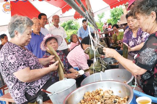 端午節來臨,昨日上午盤山社區發展協會舉辦端午包粽聯誼活動,今年適逢福寓宮溫府千歲聖誕,因此結合端午活動與廟會慶典,更邀請村里全民總動員一起歡慶佳節,讓大家度過一個不一樣的端午節。 盤山社區發展協會昨日上午舉辦端午包粽聯誼活動,一早村里居民便齊聚盤山福寓宮旁,挽起袖子幫忙包粽子,今年端午適逢溫府千歲聖誕,故結合廟方慶典與端午活動,另金城北門北鎮廟、東門代天府、西門外武廟、賢厝泰安宮、山外忠義廟等陣頭也到場共襄盛舉,讓今年的端午特別熱鬧,同時約在十時許金門縣議會秘書長許丕贊、金城鎮長石兆瑉也到場祝賀。 盤山社區發展協會理事長翁炳炎表示,今年因溫府千歲聖誕,因此結合端午活動擴大舉辦,請到歌仔戲團表演,還有各地陣頭一起熱鬧,除邀請村民總動員歡度節慶吃粽過端午,稍後也與協會志工一同慰問社區八十歲以上老人及獨居人士,另外並前往金西守備隊贈送粽子。 記者許峻魁/金城報導 端午到,粽葉處處飄香,昨日上午前水頭社區發展協會舉辦一○一年端午節活動,一早社區志工總動員,齊心合力包粽子,並邀請里民來吃粽子,一起歡度端午佳節。 昨日上午七時左右,前水頭社區發展協會舉辦年度端午節活動,一早在前水頭社區發展協會理事長許華玉帶領下,洗米、炒米,準備粽葉、滷肉、雞蛋等配料,大伙分工合作,也透過端午活動聯絡村里情感。活動當中社會局長方天吉與金城鎮長石兆瑉也到場與社區民眾同樂,另石鎮長也捐贈五千元與社區民眾加菜。 許華玉說,社區志工一早七點便開始備料,今年準備了約四千顆粽子,除邀請全村里民們一同分享,稍後也偕同志工們前往社區關懷照顧據點,金水、珠沙、賢庵、古城等四里分送粽子予獨居老人,同時也會前往福田家園與晨光教養家園慰問,另也分送予高雄港務處、調查局、塔山電廠、氣象站等單位以祝賀端午。