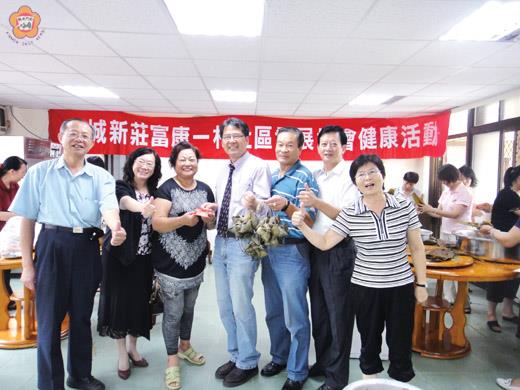 富康一村金城新莊社區發展協會於端午節假大同之家育幼組辦理端午節養生健康粽活動,由該社區的志工加上鳳翔新村、南門社區及民生社區的志工媽媽前往鼎力相助共襄盛舉,理事長唐麗輝表示,佳節食品亦能夠從食材中做改變,並從健康享受美食的觀念,讓大家知道健康飲食的重要,希望與會志工能夠成為種子,向外擴散健康訊息,讓每個人都能夠享受美食又不怕危害健康。 過節為享受美食又想要身體無負擔,富康一村金城新莊社區發展協會辦理端午節養生健康粽活動,於端午節假大同之家育幼組辦理,以關懷及健康營造為主題,推廣多纖維,少油、少鹽、少肉清淡飲食,因此社區這次辦理端午節養生健康粽食材是以薏仁、紅豆、糯米、栗子、黑糯米、腰果、葡萄乾、香菇、豆輪為主,沒有肉、蛋亦無蝦米。這項活動是剛開始大家都懷疑這樣的粽子好吃嗎?結果吃過的人都讚不絕口,感覺吃起來較安心,多吃幾顆也不覺得有「罪惡感」。 衛生局副局長李金治、保健課課長陳世和以及金城鎮長石兆瑉、主秘黃耿銘、鎮代會主席陳天成、金城國中校長楊瑞松和金城幼稚園園長盧淑惠、大同之家主任許美鳳等來賓前往賀節,品嚐養生健康粽之後也都一致表示「讚」,健康、美味,和志工們度過一個健康美味兼具的佳節。包粽活動除社區民眾親品嚐外也分送給大同之家老人及院童分享。