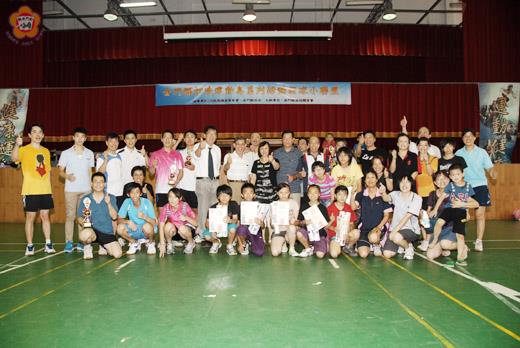 「一○一年度金門縣打造運動島系列活動│金城區羽球小聯盟比賽」昨日正式落幕,在第二天的團體賽事中,金城南門里社區殺出重圍、拿下冠軍,北門里社區則飲恨居次,西、東兩門里則併列第三。副縣長吳友欽出席閉幕典禮,並頒獎表揚各賽事優秀選手。 該項賽事在昨天上午十一時三十分許,於金城國中體育館舉行閉幕典禮,副縣長吳友欽、身兼羽球發展委員會主委的縣議員唐麗輝、金城鎮長石兆瑉、金城鎮代會主席陳天成均出席參加,頒獎表揚獲獎選手並合照留念。 在兩天緊湊的賽事中,長青、社會、高中職、國中、國小等男(女)子單(雙)打賽已在日昨出爐,至於昨天的團體組賽事中,經過一番激烈比拚後,由金城南門里社區奪冠、北門里第二名。西、東兩門里則因績分相同、併列第三。 昨日的頒獎典禮中,副縣長吳友欽也向參賽的羽球愛好者及小朋友們透露幾項好消息。吳友欽表示,目前縣政府正研擬相關方案,計劃在明年度聘請專業羽球教練蒞金指導,提昇本地選手的球技水準。另外縣府也有意在地區有線電視台開闢相關時段報導體育賽事,讓優秀選手的表現有曝光的機會,藉此宣導健康運動的觀念,號召全民來運動。