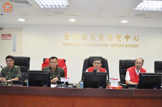 來勢洶洶的泰利颱風逼近金門,金門災害應變中心於十九日晚上八時進入一級開設,廿二個編組單位進駐消防局「備戰」,副縣長吳友欽聽取各單位的防颱措施與颱風動態簡報,同時慰勉進駐人員辛勞。吳友欽要求各部門確認防災的工作是否確實完成,務必將準備工作貫徹到底且落實,並呼籲全民加強各項防颱措施,多一分準備,以減少一分的災害。 本次颱風金門縣政府為加強本縣防(救)災整備作為,泰利颱風災害應變中心於十九日晚上八時進入一級開設,各編組人員均已進駐應變中心,以做好先期防颱整備工作,嚴防強風豪雨所帶來之災害。副縣長吳友欽與金防部指揮官王世塗中將在消防局長楊肅凱引導下,於昨日上午九時卅分到應變中心聽取颱風動態以及災害應變措施。 吳友欽於昨日到應變中心視察,聽取颱風動態以及災害應變措施,提醒各相關單位必須依照第一次防災會議,針對負責區域加強各項防颱措施,對於事先可以預防部分要先做好預防工作,比如廣告招牌、鷹架等可加強,路樹部分林務所要準備動起來,針對一些樹木要倒不倒可事先做好處理工作,嚴防強風豪雨所帶來之災害。吳友欽也感謝金防部指揮官王世塗中將、政戰主任李智雄少將在颱風來襲特別蒞臨指導協助。吳友欽也提到王世塗指揮官特別提到救災過程當中橫向的聯繫這一環較弱,要求相關單位務必要注意橫向聯繫,寧可多做一些也不要讓中間有空檔發生。 吳友欽希望各單位加強防颱戒備,做好各項防颱工作充分準備,民政局也要透過村里廣播系統,讓鄉親明白這次颱風來勢洶洶,提高警覺來防範。吳友欽也提到李縣長因公參加會議後,因台金航線停航受困於台北無法趕回,一直關心並多次撥打電話指示防災中心,務必做好防颱準備工作。並呼籲大家務必要提高警覺,希望各單位針對所提醒事項落實做好最萬全準備,讓鄉親處在有保障的生活環境,維護本縣民眾生命財產安全。 局長楊肅凱督促消防警義消,全力「備戰」,隨時出勤救災。同時,他也要求消防局各分隊要加強整備救災與救生器材,以防隨時有狀況發生可以立即出動救援。 王世塗則表示軍民本一家,任何地方有需要協助,金防部全力配合支持。並提出防衛部颱風應變中心已經完成一級開設,有關兵力、災害應變及收容處所都做好準備工作,並納入縣府災害系統作管制,隨時來支援。金防部本於防災重於救災原則,全面進行防災救災整備工作。他說,防區救災兵力編組也完成,目前有聯絡官七人進駐各鄉鎮應變中心納入運作,至於兵力需求都可以向他們提出申請支援,充分保衛民眾生命財產安全,體現金門地區軍民本一家傳統,以及同島一命互助互信之精神。 隨後吳友欽在縣府工務局長許鴻志、副局長陳世保等人陪同下,實地前往金城南門抽水站了解廠房機械設備運轉功能及排水渠道閘門開閉操作流程,自來水廠副廠長翁文貴與金城鎮公所秘書黃同慶、建設課長許世丞在場作陪,水廠工作人員也操作抽水站機組運轉、滿潮下雨與乾潮下雨的開關閉閘門、啟動抽水機、抽箱涵內雨水等動作,整個過程順利圓滿,展現抽水站汛期前準備工作完善。許鴻志指出,為防範淹水問題,水廠已針對所管抽水站及閘閥門進行全面性檢修,做好各項準備工作,會視實際水位狀況來調節疏洪,以確保防汛安全。
