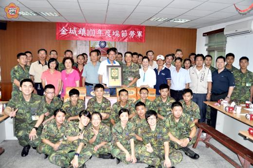 金城鎮各界端節勞軍團一行,昨天在金城鎮長石兆瑉和鎮代會主席陳天成率領下,分別前往金西守備隊和金防部砲兵群混砲營慰勞及賀節,並慰問金城鎮籍的在營子弟,受到熱烈歡迎,且氣氛十分愉快。 金城鎮各界端節勞軍團是於昨天上午十時卅分在金城鎮長石兆瑉和鎮代會主席陳天成率領下,首先前往金防部砲兵群混砲營展開端節慰勞,受到砲兵群指揮官李成中和官兵的熱烈歡迎,並與金城鎮籍在營子弟兵座談,石兆瑉對金防部支援砲兵群兵力搬運沙包堆砌於金城鎮民族路備災,同時協助清除淤泥、修剪枯樹等工作再次表達感謝,協助民眾做好颱風其間各項防颱及救災工作。 石兆瑉也期勉在營子弟兵把軍隊當成學習的學校,除鍛鍊體格外,也要為退伍後做好規劃和準備,相信軍旅生涯會留下難忘的回憶。陳天成對於官兵弟兄在災害搶救上人力支援協助表達感謝。 隨後,金城鎮各界端節勞軍團來到金西守備隊慰勞及賀節,受到部隊長顏明正和官兵的熱烈歡迎,並與金城鎮籍在營子弟兵座談,洋溢著過節的歡樂氣氛。 金城鎮各界端節勞軍團在金城鎮長石兆瑉和鎮代會主席陳天成率領下,參與成員有金城鎮代會代表李錫瑜、許績才、倪于媃、張含麗、金城鎮公所各課室課長、中華民國軍人之友社金門連絡組組長盧清土和各里里長參加,向金西守備隊及砲兵群混砲營表示敬意,並預祝端午佳節快樂! 記者陳麗妤/金沙報導 端節將屆,金沙鎮各界前往金東守備隊勞軍,致贈應景禮品向國軍官兵弟兄賀節。鎮長陳昆第、金沙後備中心主任黃平山、鎮代表王石堆等人也關心台、金籍官兵服役生活,更對軍方主動協助淨灘以及獨居弱勢關懷等工作表示由衷的感謝,雙方互動良好,展現友好情誼。 金沙鎮鎮長陳昆第、金沙後備中心主任黃平山、金沙鎮代表王石堆、光前里里長翁麗治、青溪金沙支分會主委黃秀英、軍人之友社等組成勞軍團,19日下午三時前往金東守備隊,提前向官兵弟兄祝賀佳節,金東守備隊隊長蕭光龍上校,率十餘位官兵熱列相迎,並異口同聲謝謝金沙鎮各界的關心和祝福。