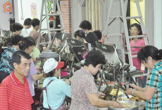 山外社區於昨日提前迎端午,志工婦女們聚集兜攏在一塊,繫索拉繩包裹一串串的角粽,關懷據點沸出熱滾滾的「博愛」! 山外社區發展協會昨天舉辦了「粽香傳愛」活動;社區志工隊的婦女們展開民「包」物「予」(民胞物與)的關懷工程-她們合力包了八百個粽子,贈予社區中年滿六十五歲的一百多位老人。 協會理事長陳自強表示,端午節將至,協會藉著包粽子的活動表達對社區的關懷,希望讓因為各種因素不方便自己包粽子的家庭,也能有應節的粽子可以享用。 他們的「粽香傳愛」活動,還擴及到社區之外的福田家園和松柏園;在那裡,也有原本住在社區裡面的老鄰居。 參與活動的人員包括社區發展協會理事長陳自強、山外里里長陳晚開以及志工隊-莊明麗、周愛寶、鄭愛英、王淑卿、宋靈華、呂淑女、許彬彬、葉鳳嬌、陳麗珍、黃明麗、黃明愛、楊秀招、黃愛惜、陳能鶴、王黎華、李秀和……等。 陳自強表示,山外社區的端節活動必須提前舉辦,因為接下來,社區裡的「英武山岩」廟將要舉辦廟慶,志工們有新的任務。今年的廟慶,社區的土風舞隊將為廟會活動進行演出,這是一個新的嚐試,希望讓廟會活動更多元,並讓社區的社團更有活力。 端午節的到來,意味著季候已經進入炎夏。金門的端午節風俗,有用雄黃抹額,擦耳以及塗寫在門窗上的傳統-目的是為了驅蟲蛇,辟邪祟。陳自強是一個不怕蛇的人;數周前,他曾經救了一條被曬得奄奄一息的蟒蛇。他把蛇盤在身上,帶往別處放生,後來卻發現身上有股蛇腥味……。就某個角度而言,蛇類是鼠輩的剋星,有助於抑制野鼠的數量。