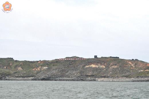 「三民主義統一中國必定勝利成功」,這是搭船前往烏坵在外海就可看到大坵島的最醒目標語。 就像金門早期在兩岸對峙時,一些軍事標語一樣的烙印,在烏坵鄉大、小坵村,也有著相同的景致吸引登島者的目光。