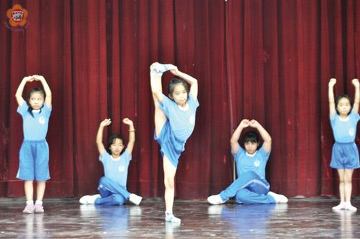 何浦國小民俗才藝表演,在幼稚園教師林麗玉等資深教師苦心經營數十年下,逐漸展現亮麗成果。近年在教育優先區外聘專業師資下,讓內容更專業,表演更精采。從八十二年左右的「鑼鼓慶佳節」到今年的「詠春精武門」,不僅學子專注、認真投入的表演神情令人讚嘆,圍繞武功做設計的民俗才藝表演節目,儼然已成何浦國小最具代表性的教學特色。 何浦國小校長李國安指出,民俗才藝社有現今的成效,是林麗玉老師自七十六年到校後,利用課餘時間用心經營,找音樂編舞,和其他如李昆明老師等體育方面專長的協助,輔導小朋友伸展筋骨,完成武功所需的表演動作,逐漸發展成為學校才藝表演的中心題材,它除了是一項代表學校的表演節目,更是藝術與人文領域的延伸學習成效。 李校長也說明,在藝術與人文領域中,包含音樂、表演藝術、視學藝術(早期的美勞),又以表演藝術的專業師資最不足。故早期大大小小的民俗才藝演出,多由在校教師利用時間額外付出時間規畫編排,直到教育部教育優先區計畫-發展教育特色,才外聘專業師資;張慧羚老師等多次指導協助下,對學校的民俗才藝表演幫助非常大,學子基本功紮根,教師也自我提昇,呈現的表演內容更加專業。 何浦國小民俗才藝社目前有十五位成員,以三年級到五年級為主,其中還有兩名一年級學生,她們分別是廖逢君、何惠姍、何伽儀、陳以馨、鄧惠瑄、王少慈、陳以玟、吳麗麗、周冠妏、何詩涵、廖亞瑄、何恩琪、蔡佳凌、何詩榆及陳珊燕。 林麗玉老師表示,七十六年到校後,即負責學校民俗才藝表演,因為自己對民族音樂的喜愛和研究,到處找音樂編舞,完成大大小小活動演出,「牧笛」即是以舞台劇的表演構想做編排,個人也非常喜歡,漸漸也累積不少表演節目。八十二年左右,「鑼鼓慶佳節」是首個將武功概念融入其中的表演,也開啟了日後的武功演出。 林麗玉說明,當時的訓練很克難,而且學生的安全非常重要。由於需要有翻滾、劈腿等動作,李昆明老師協助讓學生在軟墊上,一個一個從拉筋、伸展,土法煉鋼磨出來,現在看來十分辛苦,但是成果相當完美。 林麗玉也指出,爾後在教育優先區聘任專業舞蹈老師張慧羚的協助下,讓訓練事半功倍,她嚴格、專業的要求和指導,點到即通,小朋友也展現相當高昂的學習興趣,也提昇了表演素質和內容,目前演出節目「詠春精武門」即是由張老師指導完成。 從非本科、在校師資付出心血,數十年的克難式經營;原有的基礎加上專業、科班的技術指導,讓人見到何浦數十年在民俗才藝表演精采成果,儼然是學校教育的特色之一。