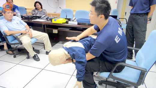 志工學急救技能消防隊派專人指導