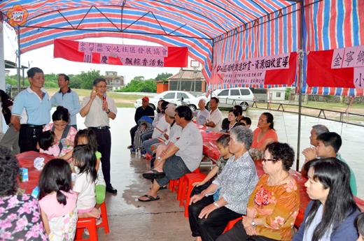 「粽葉飄香歡慶端午」,金寧鄉安岐社區發展協會昨日辦理慶祝端午節活動,金門縣副縣長吳友欽、金寧鄉長陳成勇向居民賀節,與居民共聚一堂包粽子,聯絡感情。活動也邀請金寧清潔隊宣導垃圾不落地與資源回收活動,社區居民也製作香包,現場還有節能減碳宣導,讓居民過一個健康又環保的端節。 安岐社區發展協會推出的「粽葉飄香慶端陽」活動,十分豐富,包括有│養生健康粽製作、香包DIY、環保局節能減碳宣導、金寧清潔隊宣導垃圾不落地與資源回收活動與卡拉OK歡唱、關懷慰問社區獨居老人及弱勢家庭等連串活動,居民開心的共聚安美村公所前廣場參與活動。該社區發展協會理事長薛成吉與總幹事忙於招呼鄉親來參與活動,副縣長吳友欽、鄉長陳成勇前往向居民賀節,與居民共聚一堂包粽子。 安岐社區辦理端午節慶祝活動,大人小孩都來參加,忙著準備粽料以及清洗粽葉,一大早社區理事長和居民忙著包粽子,一串串粽子高掛在架子上,粽羽飄香,志工把剛煮好熱騰騰、粽香四溢的肉粽,端上桌一起慶祝,也前往贈送獨居老人,表達全社區居民的一份賀節之意。 副縣長吳友欽首先代表李縣長向大家賀節,感謝鄉親奉獻心力為社區來努力,並指出,金門未來的希望是地方各社區,大家凝聚向心力把社區經營好則受益的是社區居民,縣府也用心和社區共同來推動,讓社區居民有個舒適社區環境,生活上彼此照顧關懷,讓居民認為居住的社區場所提供很好服務,安全上更不需顧慮。 吳友欽也提到金門觀光小城票選入圍、金門也榮獲全國最幸福城市第一名,這些都是鄉親支持努力才能獲得,所以社區的各項建設才能提昇。而縣長為了提供鄉親服務的品質與生活水準,未來如鄉親有需要協助地方,只要撥打電話「1999」就有專人為您提供服務,責由相關處室協助解決你需要處理的問題,希望將鄉親的事情看作政府的事來做,所以這支電話是鄉親尋求協助最好辦法。