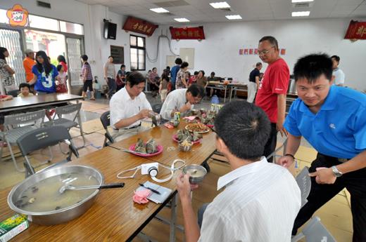 端午節將至,金門城社區發展協會昨日上午舉辦端節聯歡活動,金門城社區居民扶老攜幼聚集社區活動中心,一齊歡度佳節,金門縣政府主任秘書盧志輝、金城鎮鎮長石兆瑉也特前往向社區民眾致意。 金門城社區發展協會昨日舉辦端節聯歡活動,一早便在理事長率領下,由社區居民分工合作,一齊備料包粽子。石兆瑉在十時三十分左右前往社區祝賀,他在致詞時表示,看到許多居民到場參與,足見社區向心力十足,同時他也希望未來公所辦理各項社區座談會時,民眾也能踴躍參與,別讓自己權益睡著。另盧志輝也於十一時許到場,並與鎮長、理事長及地方居民一齊享用粽子大餐,盧志輝在餐後對於民眾的手藝不禁豎起大拇指,大表讚賞。