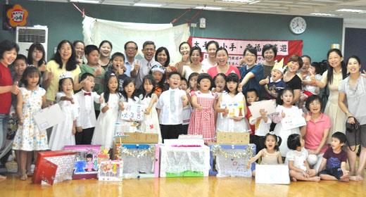 「大手牽小手,幸福逍遙遊」親子活動,昨進行成果發表,來自十五個家庭的小朋友精心打扮出席,彼此做愛的分享,透過在課堂中完成的透明書,為期二十二小時的親子共學活動也圓滿落幕。 「大手牽小手,幸福逍遙遊」親子活動,自四月八日起開課,吸引十五個家庭約五十位親子參與,由講師王正宜引導親子透過繪本導讀、創意棒偶、音樂欣賞等內容,增近親子良好互動。 課程中,除了親子共學課程外,也特別為家長規畫兩場心靈讀書會,親子在講師王正宜的帶領下,循序完成透明書創意繪本DIY,並完成創意棒偶,克難樂器DIY,我導我演創意舞台劇等考驗,昨最後一堂課,在體能活動室,進行大手小手故事屋-愛的分享。 副縣長吳友欽前往參與活動並指出,親子一起學習十分不容易,家長需要花費時間和力氣陪伴,相信只要付出努力,持續進行保持良好親子學習習慣,必能嚐到成功的滋味。 小朋友大方用愛的鼓勵謝謝副縣長的勉勵,並一一秀出透明書,彼此做經驗分享,在笑聲和掌聲中,結束為期二十二小時的活動。