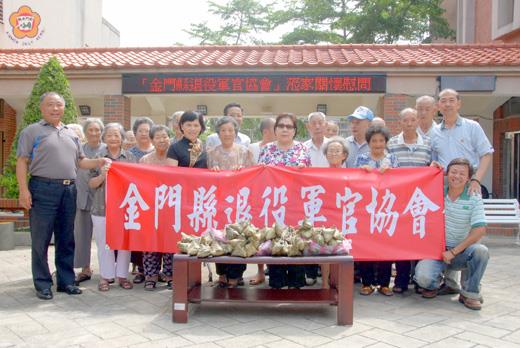 金門縣退役軍官協會昨天在理事長林永塘帶領下,前往大同之家安養中心探望就養老人,並親手送上一百四十顆粽子,提前向就養老人們慶賀端午,林永塘等人並與院中老人閒話家常、噓寒問暖,關愛弱勢的用心讓就養老人倍感親切。 林永塘是在昨天上午九時三十分許,會同前社會局局長許乃權及總幹事許進元及協會理、監事代表夥伴們前往大同之家探望就養老人們。一行人受到大同之家主任許美鳳及院內就養老人的熱烈歡迎。探望過程中,林永塘等人在園區內觀看老人們打四色牌、唱歌娛樂,關切他們平日的休閒生活與起居概況。 對於退役軍官協會的到訪,院內老人個個是眉開眼笑,急忙起身與林永塘等人聊天閒敘。退役軍官也乘機拿出包好的肉粽送上,向就養老人們提前賀節、表達敬意。 金門縣退役軍官協會理事長林永塘表示,該會秉持軍校「親愛精誠」共同校訓及成立宗旨,更禮聘到資深退役將校任協會顧問,希望藉由他們在軍旅服務的專長及才能,有計畫、有步驟、有成效的方式,引領協會凝聚力量。此次端節慰問活動就是希望帶動會員投入社會志工服務行列,關心地區老人前輩,為社會貢獻一己之力。