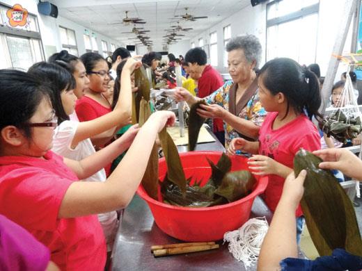 為推動及傳承本土語言及文化之美,金鼎國小配合端午節慶進行母語日推動教學,邀請社區媽媽指導學童包粽子,以營造母語學習情境外,校方也舉辦端午節相關議題有獎徵答活動,藉由親子共學的方式提高孩子對母語學習的興趣,讓學生皆能在學校母語日活動中做深度學習,讓本土語言深植紮根,進而培養學生樂於口說與傳唱之基本能力,深刻感受閩南語鄉土語言之美,進而建立愛護鄉土、關懷社會與自然之人本情懷。 教育部發布「高級中等以下學校及幼稚園推動臺灣母語日活動實施要點」,各級學校於每週選擇一上課日做為「學校母語日」,金鼎國小在推行母語方面,成立該校金門母語日推動小組,擬定學年度實施計畫並推動相關事宜,訂定每週三為本校之母語日,結合相關領域及朗讀活動進行母語日推動教學,並以金門閩南語教材作為上課內容,講師也皆由學校老師擔任。 金鼎國小為配合端午節慶特進行母語日推動教學單元活動課程,邀請社區媽媽教導學童如何包粽子,並透過有獎徵答活動以閩南語和學生交談。讓學生認識傳統民俗節日「端午節」的由來與傳說,有哪些慶祝活動與民間習俗等等,並於階段性的課程結束後,學校也會辦理「母語教學及推廣親子共學成果發表會」,讓這些家長和孩子們粉墨登場,並全程以母語演出。透過活潑的戲劇表演或吟唱方式,他們展現了一學期來的學習成果,同時也讓與會來賓見證親子共學母語的成效。 傳說粽子最早是因鄉民於屈原投江後,唯恐江中魚蝦吃掉屈原身體,乃以竹葉包糯米飯擲入河中,想要使屈原身軀完整,後來 所包的食物除糯米外,尚加入豬肉、花生、鹹蛋等內餡,演變成現代的粽子。中國人是講究飲食的民族,即使是一顆小小的粽子,也有令人歎為觀止的變化,不但造形各異,小至一口一個大到逾二斤,口味更是五花八門,每到端午節前約一個禮拜,家庭及商家便開始準備各種材料包粽子,光是聞著蒸粽子透出的香味就令人垂涎三尺了。在台灣,雖然採購現成粽子相當方便,但由於端午節過後即開始進入一年一度的大考季節,「包粽」又與「包中」諧音,考生家長們常會親自包粽子給考生吃,以保佑孩子考試順利。 校長張峰德指出,教育部推動學校母語日,藉由學校母語日之推廣,讓學生體認母語之美,並鼓勵孩子多說、多聽,逐漸引導孩子主動說母語。並鼓勵學校落實「親子共學母語」,其最大的目的是希望母語學習不應只侷限於學生學習上,更應該透過與家長溝通、互動的方式,強化家長認同母語的學習,進而指導孩子,讓孩子不僅能在學校運用母語,亦能延伸至家庭學習,同時增進親子間的互動,培養良好的親子關係。