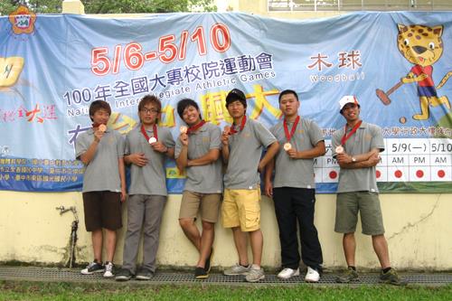 國立金門大學參加100年全國大專運動會木球賽,金門大學在四十多所學校的激烈競爭下,榮獲男子公開組團體第三名,女子公開組團體第六名,載譽歸來,為校爭光。 「100年全國大專校院運動會」於本月5日至10日假國立中興大學舉行,共有162所大專校院一萬多位選手進行公開男子、公開女子、一般男子、一般女子共四組12項競賽,並於6日晚上在台中市國立中興大學田徑場熱鬧開幕,由教育部部長吳清基主持,總統馬英九、行政院長吳敦義、體委會主委戴遐齡等都親自出席致詞加油,各大專校院校長等多位貴賓也都親自出席盛會。 本屆全大運共計辦理田徑、游泳、體操、桌球、羽球、網球、跆拳道、射箭、木球、擊劍、空手道、柔道等12個運動項目,共約七千餘位選手晉級全大運會內賽。經過會前賽及多天激烈競技後,於10日下午在國立中興大學體育館閉幕,國立金門大學木球隊,榮獲男子公開組團體第三名,女子公開組團體第六名為校爭光。 金門大學木球代表隊是由李金振校長親自領軍,學務長董燊教授擔任男子組教練,隊員為張家豪、郭智宇、闕偉儒、吳明鍵、張育誠、林勳;女子組木球教練由林本源主任擔任,隊員為彭映綺、楊琇芳、蔡依蓉、詹雅婷。