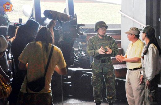 獅山砲陣地參與節目錄影李縣長帶頭表演砲操行銷金門