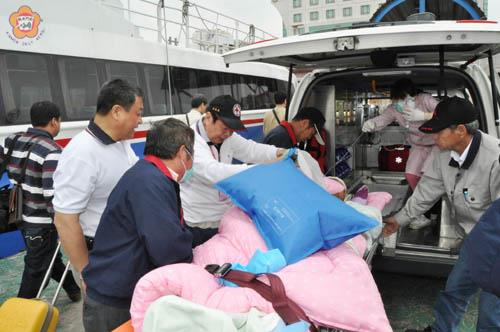 金湖鎮八十歲的謝姓老先生小三通到大陸福建泉州旅遊,不慎於下榻的旅館跌倒,頭部受創送醫後無法行動,應家屬的請求,金門縣紅十字會昨日派員自廈門將他接回金門,以便進一步照護、醫治。 金門縣紅十字會總幹事陳忠飛指出,家住金湖鎮料羅里的謝姓老先生,是在上(四)月二十九日與友人到福建泉州旅遊,隔天在石井的旅館不慎跌倒,頭部受傷,被送到當地水頭的醫院急診,醫院診斷為顱內出血,病情嚴重,又緊急轉送廈門長庚醫院動腦部手術,病情稍為穩定。 陳忠飛說,金門縣紅十字會是接獲謝姓老翁的家屬請求該會派員協助接回老人家,以便接受更好治療和照顧。 金門縣紅十字會啟動救援機制,由總幹事陳忠飛率同志工林再求、何天從、許志行等救護小組前天小三通趕赴廈門,並在廈門市紅十字會協助下,於昨日上午搭乘「新金龍」號客輪,護送無法行動的謝姓老翁安返金門,隨即由到場等候的署立金門醫院救護車送往醫院。 陳忠飛表示,謝姓老翁在署立金門醫院觀察後,將由院方視病情來決定是否後送台灣大醫院進一步治療。