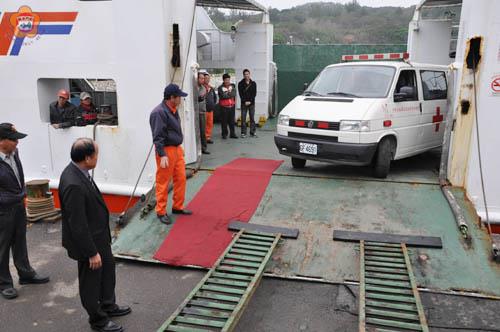 烈嶼鄉長洪成發鑑於目前傷、病患遇有需緊急後送大金門署立金門醫院醫療,必須「過海」折騰的辛苦,提出由署立金門醫院烈嶼分院救護車運送病患直接開上交通船,全程護送病患到署立金門醫院的服務要求,鄉公所昨日邀集相關單位進行緊急醫療轉診的演練,來提高轉診運送的效率,也讓傷病患在後送的過程中,一車全程的服務,維護到隱私和尊嚴。 鄉公所昨日邀集署立金門醫院、衛生局、車船處、消防局烈嶼分隊等相關單位共同在九宮和水頭兩地的碼頭進行緊急醫療轉診的實務演練,由鄉長洪成發坐鎮督軍,烈嶼鄉代會主席洪若珊、副主席蔡金爵、鄉代表方水萬、吳福全、洪鴻斌也到場關心,車船處長許一傑、烈嶼鄉公所秘書呂合成、社會課代課長方小萍、課員吳玉華、烈嶼消防分隊分隊長董紀瑋也參與演練。 洪成發說,長久以來,傷病患到烈嶼分院接受醫治,經常遇到病患必須緊急轉送到大金門署立金門醫院醫療,由署立金門醫院烈嶼分院救護車載送躺在擔架上的病患到九宮碼頭,再由醫護人員扛著擔架將病患送上交通船,大金門署立金門醫院的救護車則在水頭碼頭等候病患,海運過程,病患必須拋頭露臉,毫無隱私和尊嚴,到了九宮碼頭,還要再下船登上另一部救護車,整個後送的過程,讓病患飽受風霜和折騰,必須要有更完善和便民的改善作法。洪成發很感謝相關單位共同配合該項大小金門緊急醫療轉診的機制,他希望透由實務的演練,讓負責轉診的工作人員更熟練整個轉診的作業。 在演練的過程中,洪成發希望工作人員以及相關單位能針對需要改善的問題,再做檢討處理,來提高轉診運送的效率,使罹患緊急傷病者能即時獲得最快速的服務。