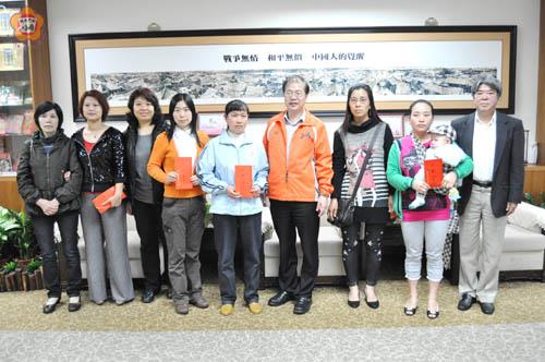 縣長李沃士昨接見內政部一百年度模範母親唐玉榮與當選台灣第二屆大陸新娘模範家庭陳碧霞、黃麗萍、吳美瑩、洪雙飛、林麗差、洪淑棉等人,李沃士相當肯定他們持家有方與為家庭的犧牲奉獻,才能在地區二千多位外配中,脫穎而出獲得內政部的表揚;最後,他也致贈每人一份程儀,並要大家若有遇到任何問題,都可以跟縣府來反映,尋求協助。 昨日上午八時許,李沃士特別接見這些獲獎的模範媽媽,由社會局長方天吉、課長許美鳳陪同。 恭喜!恭喜!李沃士首先對各得獎者表達恭賀之意,他說,大家都是經由村里推薦,經過內政部評選而獲獎,李沃士指出,金門的外籍配偶現在累積已有2016人,大家的獲獎更顯不易。 李沃士說,母親節是感恩的日子,看到大家將家庭照顧的如此幸福美滿,讓社會更加和諧,有活力與希望,他也要特別道聲感謝。此外,他也提醒大家,若有遇到任何問題,都可以跟縣府來反映,尋求協助。 社會局表示,當選內政部一百年度模範母親身分,必須是弱勢家境清寒,家庭雖遭遇困境,卻能以積極樂觀態度面對生活,並努力克服逆境者,每位獲獎者的背後都有令人感動的故事。 像唐玉榮,她的先生因為施工意外而身亡,讓原本生活不富裕之家庭陷入困境,其婆婆身體健康狀況欠佳,需要特別照顧,其夫未過世前唐女士未在外就業,照顧責任多由其承擔,其夫過世後,他除了肩負家庭經濟重擔外,家庭照顧責任更為加重,經縣府輔導其於金寧鄉公所從事以工代賑,每月平均收入僅新台幣一萬餘元,雖然不用支付房租費用,但因其公公及二位小叔皆為身心障礙重度者均無謀生能力,亦需仰賴其協助生活照顧,唐女士目前除了工作外還要照顧一家老小,備極辛苦,可謂蠟燭兩頭燒。 唐女雖然經濟仍然不寬裕 但其並不以為苦,鼓勵兒女努力向上,不畏橫逆以積極樂觀的態度面對生活,努力扶持家庭,照顧子女成長,犧牲奉獻,實堪表揚。 還有陳碧霞、黃麗萍、吳美瑩、洪雙飛、林麗差、洪淑棉等人的故事,也同樣讓人見識到為人母的堅毅,相當值得推崇。