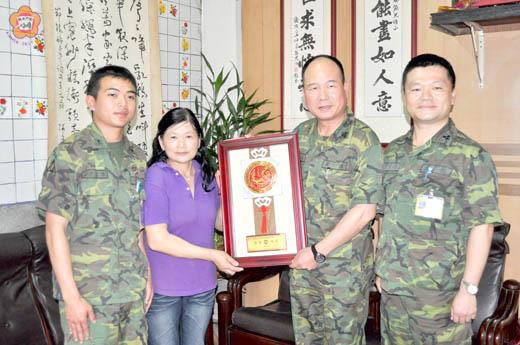 家住金城鎮的莊寶鳳榮獲建國百年金防部模範母親,而家住金寧鄉的黃招治也獲今年度空軍模範母親的殊榮。昨天,金防部政戰副主任吳福國、空軍金門基地勤務隊長趙仁偉分別前往莊、黃兩位模範母親當選人家中致贈賀匾及獎狀致賀,並祝母親佳節快樂,場面十分的溫馨感人。 金防部政戰副主任吳福國和金西守備隊政戰處長王士誠等人,是於昨天下午三時,前往金城鎮向金防部模範母親當選人莊寶鳳祝賀,並致贈書有「母儀典範」精美賀匾一面,表彰她的懿行,值得學習的模範。莊寶鳳的長子陳崇孝從國立金門大學畢業後,於98年投筆從戎報國家;目前是官拜下士,陳崇孝在將近兩年的軍旅生涯中,在各項表現十分優良,也是長官眼中的好士官,積極爭取榮譽。 金防部模範母親當選人莊寶鳳優良事蹟有:1、鼓勵大兒子陳崇孝在完成大學學業入營服役時,積極投入國軍志願役的行列,擔負起捍衛金門這片領土的成員之一,並在表現也獲得幹部認可,正式完成初領班的訓練,目前官拜下士一職。2、子女有正當職業,二女兒陳婉在母親身教言教影響下,大學畢業後投身教職作育英才,目前於金湖幼稚園任職,為社會服務。3、曾榮獲金城鎮九十年模範婦女獎及榮獲金門縣政府九十年模範婦女。 另,空軍金門基地勤務隊長趙仁偉和相關人員昨天上午也至金寧鄉致贈獎狀、鮮花給今年度空軍模範母親黃招治,並一起切蛋糕祝賀,場面十分的溫馨。她的兒子翁嘉聖官拜上士,軍旅生涯有十一年表現深獲長官與同事肯定,平日主動協助隊部事務,工作之餘更是利用時間進修充實,近年來連續修得空中大學與金門大學雙學士學位,在長官的鼓勵下也準備朝碩士學位努力。 在同僚的眼中,翁嘉聖在校期間不僅用功認真,也主動擔任班級幹部,對於空軍形象有正面加分作用。翁嘉聖因為優異的表現,此次空軍遴選模範母親,他的母親黃招治獲頒今年度空軍模範母親獎,表彰其對於家庭的貢獻,更重要的是肯定翁媽媽教育子女的用心,這份用心也讓空軍得以擁有一位優秀的子弟兵。