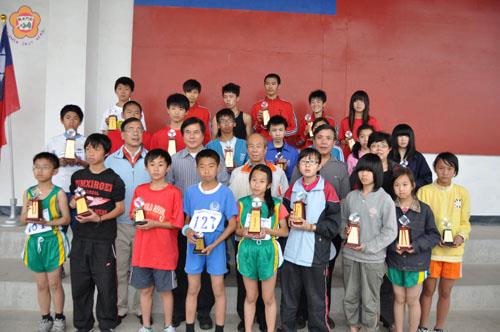 地區一百年春季越野賽昨日下午於金門高中田徑場開跑,地區長跑好手何盡文如預期般地在社男組拿下第一名,而社男團體組由金門田委會隊奪冠,金門高中包辦高男組與高女組雙料冠軍,國男組第一名為金寧中小學、國女組第一名為金城國中,國小組則分由中正國小、古寧國小奪得男子、女子組的冠軍。並由縣府主任秘書盧志輝頒發獎盃、獎金、獎狀表揚。 金門地區100年度春季越野賽昨日下午2時20分於金門高中田徑場準時鳴槍起跑。這項賽事聚集了地區各界路跑好手,包含小學、國中、高中、社會男女組共381位選手參賽,活動現場相當熱鬧。 由於比賽人數眾多,因此分兩梯次出發;第一梯由小學組率先起跑,經金門高中田徑場出華僑之家方向側門後,沿金門高中外牆繞行一圈,往下埔下折返點拿取信物後折返,順著慈湖路再回到金門高中田徑場。3公里的路程小選手們都奮力前進,拿出平日訓練成果。各校老師也跟著隊伍,一路為小選手們加油打氣!在全體國小組完賽後,第二階段由國中、高中、社會組統一出發。經金門高中田徑場出華僑之家方向側門後,延慈湖路至慈堤前三角石碑拿取信物後原路折返,全長6.5公里的賽事中,金門田徑委員會展現出過人實力,一開賽就形成領先局面,其中地區路跑好手何盡文跑出金門高中田徑場後更是一路獨走,輕鬆以數百公尺差距獲勝。金寧中小學國中部本次比賽在周清耀主任領軍下另組一隊越級挑戰社會男子組,這些國中小將不畏與路跑經驗豐富的大哥哥們競爭,團體積分以一分險勝金門縣警察局刑警隊,勇奪社男團體組季軍。整場賽事一路上熱情的鄉親不斷為選手們加油打氣,甚至有民眾拿出相機拍取精采畫面,主動協助折返點、路口引導等工作,展現出金門鄉民的熱情與支持,不僅令選手們深受鼓舞,也使得活動更具意義。 閉幕典禮由縣府主秘盧志輝頒發獎金、獎盃表揚,教育局李再杭局長、許能麗課長及各校校長也到場為選手們勉勵。雖然閉幕典禮下著小雨,但各單位依然留下接受頒獎,充分展現運動家的精神。 昨日比賽成績團體賽:社會組:第一名田委會、第二名金門高中、第三名金寧中小學。高中男生組:第一名金門高中。高中女生組:第一名金門高中。國中男生組:第一名金寧中小學、第二名金城國中、第三名金沙國中。國中女生組:第一名金城國中、第二名金寧中小學、第三名金沙國中。國小組男生組:第一名中正國小、第二名金寧中小學、第三名古寧國小、第四名開瑄國小、第五名柏村國小、第六名何浦國小A隊。國小組女生組:第一名古寧國小、第二名金寧中小學、第三名開瑄國小、第四名金沙國小、第五名中正國小、第六名卓環國小。 個人組:社會男生組:第一名何盡文、第二名黃嘉維、第三名李建中、第四名蔡一豪、第五名陳漢聲。社會女生組:第一名董毓婷、第二名王錦鳳。高中男生組:第一名賴弘文、第二名李文富、第三名許紹為、第四名林翊倫、第五名林子誠。高中女生組:第一名張綺驛、第二名洪欣瑩、第三名蔡欣雅、第四名王鈺涵、第五名張育瑄。國中男生組:第一名林豐盛、第二名楊天佑、第三名吳炯益、第四名莊銘宇、第五名張正林、第六名林子恩、第七名李忞杰、第八名李冠穎。國中女生組:第一名翁玉柔、第二名李芸錚、第三名李宜庭、第四名顏翊筑、第五名歐陽孔惠、第六名楊采薇、第七名蔡孟煒、第八名陳文禕。國小男生組:第一名陳清湖、第二名葉濟豪、第三名呂佳昇、第四名莊旻浩、第五名王端翊、第六名呂允博、第七名何子恩、第八名蔡育寧、第九名何嘉竜、第十名李根基、第十一名周鑫濠、第十二名黃遠鈞。國小女生組:第一名蔡宜妮、第二名李映嬋、第三名楊采妮、第四名李映萱、第五名楊子逸、第六名周嘉燕、第七名楊郁萱、第八名許蕙琳、第九名蔡孟臻、第十名何筱倩、第十一名黃湘琪、第十二名林憶蘭。