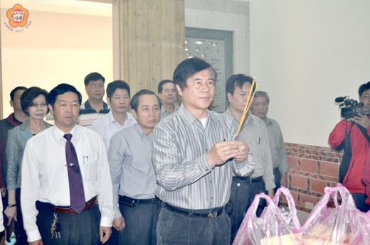 古寧頭萬聖祠昨日舉行安奉土地公金身及國共亡靈暨各姓氏神主牌開光點主安座儀式。 古寧頭萬聖祠這項安座開光儀式,由縣府主任秘書盧志輝主持祭典,金門縣李氏宗親會理事長李錫榮、古寧頭李氏宗親會理事長李再杭、縣府各局室主管及金寧鄉長陳成勇與公所秘書傅仰鑫及各課室主管陪祭,並由道士法師依道教儀式舉行傳統神像開光點眼,儀式莊嚴隆重。 盧志輝表示,「萬聖祠」興建,緣起於民國九十七年十二月間,金防部排雷大隊執行古寧頭至沙崗排雷,排出逾千座明、清兩代以來古寧村民祖墳,以及三十八年古寧頭戰役陣亡的國共兩軍遺骸,引發地方民眾關切。 為使該區營葬之先民及陣亡官兵英靈歸靈有所,並對其遺屬有所交代,金門縣政府經會同金防部、金門國家公園管理處研商,並與古寧頭村民協調,去年十月間斥資約新台幣八百萬元,在古寧頭戰史館前步道左側興建兩落一拜庭規模的「萬聖祠」。