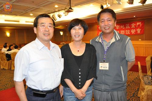 圖文/蔡家蓁 研考室主任陳朝金(左一)、民政局課長楊志斌(右一)與臺南市明德里長陳瑞華昨日喜相逢,原來三十年前,三人一起參加縣府的臺南商展而結識,分隔三十載,三人再度聚首,陳瑞華從「金門女兒」成為「臺南媳婦」、陳朝金與楊志斌則在公務體系,各有擅長,事隔三十載,昨日再相會,三人都忍不住大嘆,奇妙的緣分!