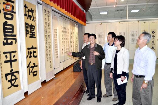 為迎接建國百年金門迎城隍系列活動,金城鎮公所昨日舉辦翰逸神飛書法展,昨天在鎮公所七樓揭幕,展出書法學會理監事的書法作品,鎮長石兆瑉希望透過藝文活動展出,以翰墨香來陶冶身心,進而豐富生命內涵。 金門美術學會理事長楊誠國、金門縣書法協會理事長洪明燦等人日昨前往金城鎮公所拜會鎮長石兆瑉,並就配合迎城隍主題舉辦書畫展宜研討,石兆瑉表示,目前鎮公所規畫有一處小藝廊,歡迎書法及美術兩會配合迎城隍主題舉辦書畫展覽,共成就一樁藝文和宗教文化的美事。 這項由金城鎮公所主辦、金門縣書法協會承辦的「翰逸神飛書法展」,於昨日上午十時三十分起在金城鎮公所七樓展演廳開展,由金城鎮長石兆瑉主持,包括金城鎮代表會主席陳天成、代表倪于媃、金門縣美術學會前理事長陳添財、金門文藝學會理事長黃耿銘,以及藝文界同好、鄉親近六十人到場參觀展覽。這項書法展,共展出金門縣書法協會理事長洪明燦及各理監事等十六人創作作品。金門縣書法協會理事長洪明燦贈送書有「城隍庇佑,浯島平安」的書法作品,於翰逸神飛書法展中展出,期讓整個展覽及迎城隍活動更形增色和光彩。 鎮長石兆瑉指出,金門文風鼎盛,在藝術造詣水平上令人刮目相看,今年起每年迎城隍活動都要配合辦理書法展,期盼能和整個活動作一結合,並表示,今年迎城隍活動有兩個重要的元素,一是蜈蚣座、一是扛輦,最大的特色是用人力去抬;而且,今年迎城隍值逢建國百年,金城鎮公所主導舉辦「百節蜈蚣座」、「百輦」兩個申請世界紀錄的創新活動;他也感謝書法、美術兩學會對於藝文活動的支持,希望透過藝文活動展出,帶動地方的藝文氣息及內涵,增加文化生活的氣質。 陳添財對於鎮公所舉辦書法聯展或個展肯定,也強調金門書法藝術已「走出去」,未來將繼續努力,期使藝文活動更蓬勃發展。 鎮公所表示,翰逸神飛書法展展期從昨天起到五月十日止,歡迎軍民把握機會踴躍到場參觀。