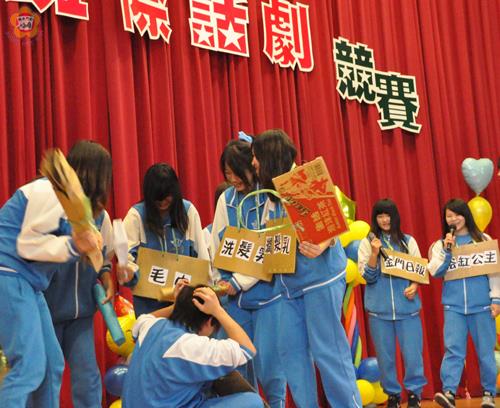 國立金門農工職校昨天舉辦「反菸毒、反霸凌、友善校園」班際話劇競賽。養殖二的演員戴上面具,化身校長陳水芳,把時事導入進行「仿諷」,還把台下的教官差遣上台成為臨時演員,讓全場笑得前仰後合,東倒西歪。 比賽的成績如下。反黑幫反霸凌組:特優:養殖二的「no bully」(禁止校園霸凌)、資訊二的「人黑不是罪;霸凌才犯罪」。優等:漁業二的「兒時記趣」、餐管二的「反黑幫反霸凌」、機械二與家政二的「反黑幫反霸凌」。 戒菸、反毒組:特優-商經一的「抽菸的後果」、家政一的「吸毒人生」。優等-漁業一的「向菸說no」、資訊一的「遠離致命的誘惑」、汽車一的「現代西楚霸王」。 評審鄭淑芳認為的「no bully」(禁止校園霸凌)主題清楚,與台下有互動,而且沒有「背台」(背對台下)的情形。商經一的「抽菸的後果」舞台張力很不錯。 評審李依文認為餐管二與機械家政二的「反黑幫反霸凌」人多勢眾,展現團結力量大的效果。 評審陳小蘋覺得漁業二的「兒時記趣」用舞蹈表現,難度頗高。