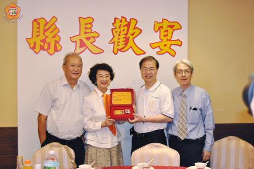 縣長李沃士昨日頒贈榮譽縣民證給抵金的新加坡財團法人傳神居家協會主席黃美雲,並希望她能代為邀請新加坡的金門同鄉回到自己家鄉來走一走。而家鄉的深情厚意,讓黃美雲非常非常感動,永生難忘。 新加坡財團法人傳神居家協會(總會)主席黃美雲日昨率領該會與台灣傳神居家照顧協會一行三十餘人抵金訪問展開關懷之旅,昨日中午縣長李沃士特別設宴歡迎他們的到訪,包括省主席薛承泰、縣府社會局長方天吉、省府組長張金成、及黃美雲夫婿陳遠才、台灣傳神居家照顧協會執行長李志偉、前任理事長馬之秦(知名藝人)與新加坡及台灣的傳神居家照顧協會會員等人出席。 餐敘中,李縣長並代表縣府頒贈「金門縣榮譽縣民證書」,感謝她對於縣政發展的關心。證書中寫道「勳猷懋績、夙所欽崇、對我縣政發展備極關懷、貢獻卓著,特頒此證,藉誌雲誼併申崇敬。」 縣長李沃士指出,金門是適合大家度假、深度旅遊的好地方,非常高興黃美雲主席與夫婿陳遠才回到自己家鄉,更深刻瞭解家鄉的現況。 李沃士縣長也希望黃美雲主席能夠代為邀請新加坡的金門同鄉撥空回到自己家鄉來走一走,關心家鄉的發展,聯絡鄉情。並寄上誠摯的邀請。 縣府利用一天的時間就完成了榮譽縣民的製作,當中還有黃美雲的照片。從李沃士縣長手中接下榮譽縣民證時,黃美雲當場感動落淚。另外,省府秘書陳國興積極準備了黃美雲老家英坑黃氏族譜,昨由省主席薛承泰面贈,也讓黃美雲激動不已。 她一再地說,對於家鄉的深情厚意,讓她非常非常感謝、感動,永生難忘。此次回鄉感受到鄉親的愛心與熱情,一定會把金門介紹給新加坡金門鄉親,鼓勵他們常回家鄉金門。 薛承泰主席也再次將迎城隍記者會中即興完成的詩當場吟讀,並邀請出席的傳神居家協會廣為宣傳金門的迎城隍活動,邀請大家一起來體驗金門迎城隍活動。 出席餐會的傳神居家協會會員也非常滿意金門的清新環境與人文風情,他們說「下次還要組團再來!」。