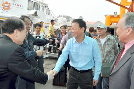 大陸南安市委副書記林錦明一行二十餘人,昨天循金廈小三通航線抵金;金門縣長李沃士、縣議會議長王再生等人,前往水頭碼頭迎接林錦明一行,歡迎他們到金門參訪。 林錦明一行是於昨天上午九時四十五分,搭乘金廈小三通班船抵達水頭碼頭,李沃士及縣府交旅局長楊鎮浯、港務處長吳世榮,以及王再生和縣議員林孫全、議會秘書長許丕贊等各級主管前往迎接他們的到來。 他們一行包括有統戰部長丁瑞金、人大副主任葉維新、黨委副書記黃清池、宣傳部副部長黃金土、台辦主任陳進發、教育局長吳亞明、文體局副局長侯洲洋,以及石井鎮黨委副書記黃保林等人在內。 在抵金後,也前往金門各地參訪,於昨天下午四時左右搭機,中轉飛往高雄後,前往台南準備參加開台聖王鄭成功350週年中樞大典系列活動。