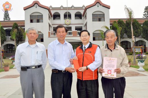 捐資興學!古寧頭雙鯉古地關帝廟管理委員會昨日捐新台幣五萬元予古寧國小,李柏洲個人捐助一萬元,做為該校校務發展及教育活動經費。校長楊成業致贈感謝狀,對其關愛學童、熱心學校教育義舉,嘉惠學子表達感謝敬佩之意,也深獲地方人士及全校師生的讚賞。 古寧頭雙鯉古地關帝廟管理委員會日前召開第三屆一百年度第一次委員會,會中討論通過一項提案,同意贊助古寧國小新台幣五萬元,充當該校校務發展及教育活動經費案。昨日該會主任委員李開陣在副主任委員李朝金村長及常務監事李柏洲陪同下,捐新台幣五萬元予古寧國小,由校長楊成業代表接受,對關帝廟管理委員會熱心教育,捐資興學,嘉惠學子的義舉表達感謝。並表示擇日將義舉陳報金門縣政府獎勵,由縣府核定頒發捐資教育事業「愛等獎狀」。 另李柏洲個人捐助一萬元做為該校校務發展及教育活動經費,感謝母校培育也為學子建立良好學習環境,勉勵學子勤奮向學人人都能領獎,他日學有所成亦能回饋母校,造福後輩。楊校長昨日致贈感謝狀,對其事業有成,回饋母校的義行,值得學弟妹效法學習。 關帝廟管理委員會主任委員李開陣指出,孩子的教育不能等,社會的角落裡仍有需要幫助的孩子或家庭,因此,除了希望本著回饋社會、重視教育之心捐資興學,也期望能起拋磚引玉之效,鼓勵社會各界正視這個區塊,讓孩子們都能夠順利接受完整的國民教育。同時勉勵學子們要常懷感恩的心,不要忘根本,將來學有所成,也能為社會、鄉梓盡一分心力。