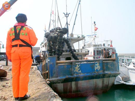 百噸級大陸籍鐵殼拖網漁船,昨日凌晨於翟山外海越界作業時,遭海巡隊查獲。大陸漁船曾一度蛇行逃避拒檢,並危及海巡人、艇安全,最後海巡隊員對空鳴槍才制止,並登船查獲金門保育鱟等魚獲約二十公斤。金門海巡隊表示,全案依違反兩岸人民關係條例罪嫌將人、船押回料羅港偵辦,並沒收所有漁具、漁網,待偵辦告一段落後將予以遣返。 金門海巡隊表示,大陸福建龍海籍鐵殼拖網船「閩龍漁六六六五三號」,昨天越區到金門南海域的翟山至料羅海域作業,海巡隊隊長楊紋寧率PP-5037 號、PP-3556號巡防艇,會同金門海岸巡防總隊二艘多功能艇展開護漁行動,於凌晨一時四十四分在翟山外海零點二海里處查獲。 金門海巡隊說明海上查緝情況時表示,海巡隊船艇實施包夾查緝時,一百二十噸的大陸拖網船拒絕停船受檢,並一度蛇行逃避,以致PP-5037號艇更險些遭漁網纏住拖行;由於危及海巡隊人、艇安全,艇長許勝忠臨機應變,由艇員對空以霰彈槍擊發震撼用槍口火焰彈及橡膠彈各一發,才予以制止,並登船檢查。 海巡隊員在登檢後,於船上查獲金門保育鱟二對以及魟魚等二十公斤魚獲,全案依違反兩岸人民關係條例罪嫌將十二位漁民及漁船,押回料羅港偵辦。金門海巡隊表示,全案偵辦告一段落後,人船將遺返出境,而漁船的漁具、漁網則全數沒收。根據海巡人員的說法,大陸漁民供稱,海上蛇行拒檢是因畏懼檢查而不是惡意反抗,以後不敢再越區作業。金門海巡隊隊長楊紋寧則表示,這是近三年來,大陸百噸級以上鐵殼船,闖入金門第三例。