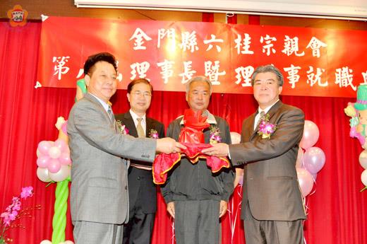 金門縣六桂宗親會昨舉行第八屆理事長暨理監事就職典禮,原任洪允典任滿功成身退,由縣府社會局長方天吉接任理事長一職,縣長李沃士與縣議會議長王再生等都親往道賀,肯定宗親會提升金門的世界知名度及推展地區觀光的努力,並希望方天吉帶領理監事持續為宗親來服務,努力打拚,讓金門縣六桂宗親會會務蒸蒸日上、一天比一天好! 就職典禮昨日在盈春閣餐廳隆重舉行,縣長李沃士、議長王再生、前議長謝宜璋、議員蔡水游、謝東龍、唐麗輝、林孫全、周子傑等及多位縣府局長、鄉鎮長、鄉鎮代表會主席等貴賓到場祝賀,與六桂宗親代表共同慶賀。 縣長李沃士並親頒理事長當選證書給新任理事長方天吉,同時在李縣長主持及常務監事翁自然監交下,新任理事長方天吉與卸任的理事長洪允典完成印信交接,正式走馬上任,他並頒發各理監事當選證書。 縣長李沃士也向新任理事長方天吉祝賀,並指出,當選是責任的開始,勉勵他在既有的基礎下,帶領理監事與會員持續為宗親來服務、努力打拚,讓金門縣六桂宗親會一屆比一屆會務更為健全、更加理想、更加成功!並祝會務蒸蒸日上、一天比一天好! 李沃士說,六桂宗親會在金門是很大的團體,在理事長洪允典的帶領下,過去舉辦過多次大型活動,曾於金門舉辦世界六桂宗親會聯誼大會,首開大型世界宗親會在金門舉辦聯誼會的先例,後來並有柯蔡的世界宗親會到金門召開年會,去年李氏宗親會也邀請世界李氏宗親會到金門舉辦年會及觀光旅遊,世界宗親會來金門舉辦聯誼會對於推展金門旅遊觀光,相當有幫助,金門縣六桂宗親會是開路先鋒。他也說,推展會議觀光、提升金門知名度,大家有志一同,縣議會王(再生)議長也說後年也要邀請世界王氏宗親來金門聯誼。 李沃士表示,六桂宗親會過去就是健全的社團組織,會務經營相當穩健,不管是世界或台省的六桂宗親向心力堅強,大家有目共睹,宗族文化在兩岸保持最好的,六桂宗親會是一個典範。 對於六桂宗親會會務發展奉獻良多的原任理事長洪允典也感謝宗親會宗長、兄弟姊妹八年來對他及宗親會的支持與鼓勵,他回憶首次在金門舉辦六桂宗親世界大會時,那是地區在結束戰地政務後首次在金門舉辦世界級的宗親會大會,也感謝曾為此努力的宗長的協助,為宗親會樹立一項新紀錄。 洪允典也對於方天吉出任理事長表示祝賀,同時也希望李縣長、王議長及各理監事、會員持續給予支持,讓六桂宗親的會務發揚光大。 議長王再生也推崇老同事(議員)洪允典在二任理事長任內領導宗親會的貢獻,首次在金門舉辦了世界六桂宗親會,為「讓金門走向世界」締造了很好開端,王再生也提到自己的媽媽是廈門小嶝人,與小金門淵源很深,目前在廈門的小阿姨住在大嶝,他也非常讚許在兩岸情勢和緩和平發展之際,金門在李(沃士)縣長的領導下,積極向東南亞、大陸招商,引進世界宗親會人口來金門舉辦聯誼大會或年會,尤其是金廈小三通往來人數已二百五十萬人次,加上大陸即將開放民眾到台灣自由行,估算每年到廈門旅遊的旅客高達二千五百到二千八百萬人,當中如果有一、二成的人來順道小三通金門旅遊,那金門將也越來越多的旅客入境觀光,金門未來經濟發展可期。 「惠風和暢、群賢畢至」,方天吉理事長表示感謝與感動,他提到六桂祖先是宋朝初年福建泉州的翁乾度,他有六個孩子,分姓「洪、江、翁、方、龔、汪」,由於這六個孩子都很有出息,先後金榜題名榮登進士,開創了「六桂聯芳」的千古佳話,而這六位進士的後裔,也自此分為這六個姓氏。他說,六桂一脈相承,血脈相連,前輩宗長購置會產、設獎學金獎掖學子,值得肯定與欽佩。而他一貫努力的方向就是照顧弱勢,未來宗親會堅持服務與建設金門的方向,用心熱愛金門這片土地,秉持服務宗親、服務社福的宗旨來努力。 財團法人金門縣六桂宗親會第八屆理事長為方天吉。常務理事洪志榮、洪國正、翁明海、洪成進。理事洪志合、翁文虎、江海隆、汪秋明、洪國湖、洪天就、洪植地、翁炳炎、翁水沙、方水萍。候補理事洪繼仙、洪萬宗、翁文獻、方駿洋、洪慶泉。而常務監事翁自然。監事翁章成、洪振輝、方榮森、洪篤慶。候補監事洪天贊。