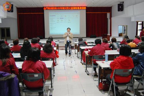 金門縣政府消防局為提升婦宣隊防火宣導技巧暨促進防火宣導效能,並激勵士氣增進志工服務品質,昨日辦理「一百年度婦女防火宣導隊專業訓練」,聘請台北市政府消防局湯康齡教官教導婦宣姐妹們正確及淺顯易懂的防災宣導觀念與作法,與所有講習人員一同分享多年來的防火宣導心得,讓所有婦宣隊志工著實吸收了許多寶貴的知識,充實更多消防知識更也增進宣導技巧功力。 消防局昨日假消防局二樓大禮堂辦理婦女防火宣導隊專業訓練課程,邀請台北市政府消防局湯康齡教官及金門縣消防局災害預防課課長陳國瑋擔任講座,針對火災種類,分析用火、用電安全、家用瓦斯特性及意外事故處置要領,滅火器、室內消防栓、避難器具之介紹及操作避難逃生須知、緊急救護基本常識及其他宣導要領等項課程,進行講授並指導學員實際操作運用,而接受這消防專業訓練的婦宣志工非常踴躍,也把握充電機會,認真投入各項課程學習,期使理論與實務相結合。 課程中特別邀請台北市政府消防局湯康齡教官抵金講課,湯康齡是一位學養均佳之專業講師,具有豐富的演講經驗,希望透過此次講習,能夠提昇婦宣隊員防火宣導能力,在授課講師精闢講解下,讓所有婦宣隊志工著實吸收了許多寶貴的知識,相信對未來防火宣導工作有極大助益,湯康齡並與所有講習人員一同分享多年來的防火宣導心得,並帶來最新的防火宣導的各項訊息,期望全體婦宣隊員的知識和宣導技能更加成長精進。 湯康齡教官以他從事消防工作的經歷及所蒐集的防火宣導資訊,做一有系統的整理分析,配合其專業口才,以最深入淺出的方式,將防火宣導技巧及專業常識傾囊相授給婦宣隊員們,獲得婦女隊員熱烈掌聲,名嘴果然名不虛傳,上課內容生動活潑,姐妹個個聚精會神聆聽兩小時,婦宣隊員紛紛把握機會,踴躍提出各項問題,對此次訓練能夠藉此增加婦宣人員專業知識及技能,並依宣導對象不同之宣導重點、居家安全訪視技巧等相互踴躍討論,交換各志工們平時宣導時的經驗與心得,強調對民眾進行防火宣導時必須口訣化、手勢化,讓民眾易學、易懂、易記,以能運用在日常生活當中。 消防局婦女防火宣導隊自八十八年成軍至今,組織已健全,編制人員共計有五十五人。消防局長楊肅凱非常重視婦女防火宣導隊人員平時協助推展預防火災工作的業務,也特別到場加油打氣鼓勵受訓學員,瞭解志工們平時訪視工作上所遇到的問題,希望藉由每年定期的專業複訓,充分提昇婦宣隊員防火宣導專業技能,增進應勤專業知識,提昇志工服務品質,相信對未來宣導工作有極大助益,期望在消防常識不斷的更新之下,將正確的消防知識傳達給民眾,讓民眾有防災觀念及危機應變的處理能力,達到全民防災、家家平安的目標。楊肅凱勉勵大家都能努力認真學習、汲取新知、勇於發問以解決疑惑,相信定能有所斬獲,讓防火宣導工作更落實有效,維護更多人的生命財產安全。楊肅凱表示,婦宣隊在金門地區防火宣導工作佔有非常重要的地位,在預防火災工作上盡了相當大的心力,希望藉由平時的家戶訪視及搭配消防人員的宣導活動,並在消防常識不斷的更新之下,將正確的消防知識傳達給民眾,讓民眾有防災觀念及危機應變的處理能力,達到全民防災家家平安的目標。