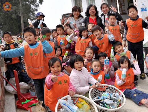 回收資源做環保,別讓地球發高燒!金湖國小幼稚園的小朋友,昨天到瓊林社區資源回收站擔任一個小時的志工;有些小朋友說,環保的重要就是別讓地球發燒。 瓊林社區於去年三月八日開始成立回收站,每個星期一會集合社區志工,把平日蒐集的瓶瓶罐罐進行分類。 垃圾放對位置就是資源,愛心送對地方就成善行!瓊林志工們把垃圾分類後變成的資源,賣給資源回收場,每個月換成現金後,都會捐給慈濟去做善事,後來擴及於家扶中心、紅十字會及早療中心。 金湖國小大紅班的二十多個學生,昨天在教師王慧騏、何曉婷的帶領下,搭乘公車,到瓊林社區資源回收站擔任一小時的志工。他們的任務就是把保特瓶的瓶與蓋分離,把瓶子踩扁;把鋁箔包飲料盒的吸管抽出,把盒子壓扁;把鋁罐、鐵罐等易開罐踏扁。這些動作,都是為了減少佔據的空間。 小朋友們有的用單腳踩,有的用兩腳蹦跳,把保特瓶踏平;有的站在籃子裡,像踩葡萄一樣,把鋁箔包踩扁;還有小朋友各自站在鋁罐上,互抱撐持以保持平衡,齊力把鐵罐或鋁罐壓平。這些工作,是由瓊林社區志工蔡承揚、吳美玉、陳金英、蔡璧鴻、劉秀華為他們解說、示範、輔導進行。 蔡承揚告訴小朋友,把被當做垃圾的瓶瓶罐罐分類之後,就變成資源-每一百個保特瓶可以賣二十元,每一公斤瓶蓋可以賣四元,每一公斤鋁箔包可以賣四元,每一公斤鐵罐可以賣五元,每一公斤鋁罐可以賣三十元。 今年一月,瓊林社區捐給慈濟一千元,捐給早療中心一千元;二月捐給慈濟一千二百元,捐給紅十字會一千元;三月捐給慈濟一千八百元,捐給家扶中心一千元。這些善款,都是利用資源回收,積少成多而來。 湖幼的小朋友體驗了回收工作之後,為蔡承揚等人獻唱了一首〈人人做環保〉的台語歌:垃圾、垃圾,呣通(不可)黑白倒!垃圾、垃圾,乎人真煩咾(煩惱)!鄉親啊鄉親,大家鬥陣來,大家相招做環保……。對於如何環保,小朋友們有如下的答案:多用環保筷(德姮)。少坐電梯(子星)。隨手關燈(子芸)。不要亂丟垃圾(文浩)。垃圾回收再利用(絜茹)。隨手關水(恩惠)。 如果不環保,地球會怎樣?小朋友們的答案如下:地球會發燒(咨伶)。人類會生病(子星)。動物會死掉(芷萱)。地球會破洞(新惠)。空氣會不好(宇桻)。水會被污染(百柔)。土地會不可以種蔬菜(紀週)。 許挈茹、尤芷萱、林子芸、許嘉尹、洪基碩等幼生都認為在瓊林的環保體驗讓他們很開心;他們這麼做是希望讓地球不要發燒!