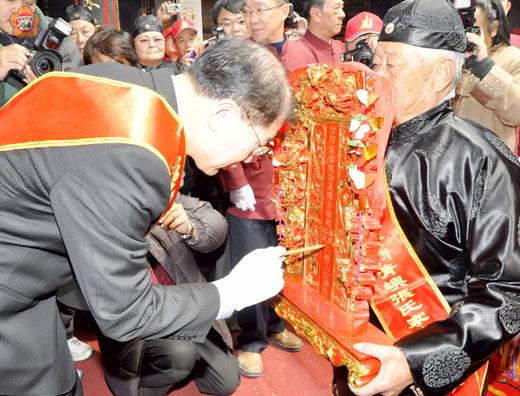 金門青嶼張氏家廟重建落成奠安慶典昨日登場,凌晨追龍圓滿成功,上午十時三十分,在縣長李沃士點主後,揭開祭祖慶賀典儀序幕。地區各界代表與兩岸三地的張氏宗親(姻親),近千人齊聚一堂參與慶典。村裡處處張燈結綵,披掛紅色制服,喜氣洋洋,加上廈門東園、霞邊腰鼓隊、北門醒獅隊及歌仔戲輪番表演下,熱鬧滾滾,盛況空前。 「清河堂儒林衍派忠勤第」金門青嶼張氏家廟重建落成奠安慶典昨登場,祭祖慶賀科儀於上午十時三十分,在縣長李沃士點主後展開。縣長李沃士率縣府團隊敬獻「世澤綿長」紅匾祝賀,並獻爐敬致意。 李沃士表示,家廟重建是宗族大喜事,青嶼家廟在地區具有相當之代表性,從「青嶼祖厝官澳宮」之俗諺可見其規模,青嶼張氏家廟經宗族團結齊心,重建完成後更顯華麗。很榮幸能夠躬逢青嶼張氏家廟百年奠安慶典,現場人山人海、喜氣洋洋,呈現金門宗族的特色。他祝福青嶼張氏家廟落成後,能更促進宗族團結和諧,也啟迪後輩並更加開枝散葉。 議長王再生與議員楊應雄及議會團隊陪同下前往敬獻「源遠流長」匾額,獻爐敬祝賀。此外,省主席薛承泰、立委陳福海、金防部指揮官張慶翔、金門縣各鄉鎮長、金門縣各鄉鎮代表會主席,分別敬獻「祖德長昭」、「源遠流長」、「祖德流芳」等賀匾;而姻親關氏宗親、姚氏宗親也依古禮前往參加祭典並敬獻「慎終追遠」、「永敦姻誼」,青嶼張氏宗親長老,相迎與相送,展現金門宗族禮俗。 而在祭祖慶賀典儀之前,昨日凌晨起,宗族長老、男丁三時繞行大東山、天摩山追龍,由青嶼分支的廈門霞邊、東園張氏宗親也出席參加,金山道殿秦府王爺、沙美萬安堂三忠王助陣。眾神明乩示,追龍靈氣祥繞,聖龍吐玉珠照家廟,祖德澤子孫大圓滿。 而三忠王張府王爺也乩示「忠孝為根、勤儉是本、詩禮傳家、書忍自訓」,四句最後一字直書即為根本家訓,勉張氏子孫。 青嶼張氏家廟奠安慶典首日儀式圓滿成功,今日上午將進行各地宗親慶賀團祭典,包括金門縣張氏宗親會、龍岡親義總會金門支會、廈門霞邊、東園、石獅梅港、晉江上方、惠安大岝、泉州安溪、廈門板橋、集美洪村、廈門海滄、漳州長泰溪園、大嶝場塘、金門顏氏宗親等祭典,並於下午一時三十分、晚間七時有戲劇公演,晚間刻時關家廟門,四月二日(農曆二月二十九日)卯時開廟門,敬宅主地基主及分燈、鬧廳、辭神等結束三天奠安慶典。