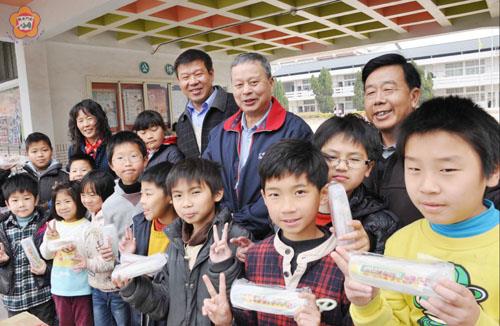 慶祝兒童節,金湖鎮公所送給了一千三百一十七份潔牙組給學區各校的小朋友們當禮物。 金湖鎮長蔡西湖昨天到金湖國小向小朋友賀節,並致贈金湖鎮公所準備的隨身潔牙組│包括牙刷、牙膏等。 蔡西湖希望小朋友從小養成潔牙的好習慣;從健康出發,修養品德,增進五育。 禮品的分配數如下:金湖國小七百九十三份、正義國小八十三份、柏村國小一百四十五份、多年國小一百一十一份、開瑄國小一百八十五份。 金湖國小校長翁明國表示,教育是希望工程,他希望小朋友能在健康、快樂、惜福的教育環境下,學習在未來當家做主。