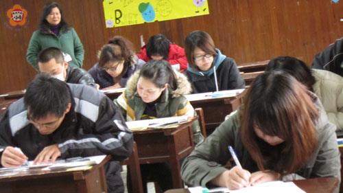 張建騰/圖文 100年度全國技術士技能檢定於昨天辦理第一梯次學科檢定;金門區的試場設在金門農工。參加檢定者正在努力作答,希望通過檢定。 金門區試務主任唐崧濤表示,金門區應考二百一十八人,缺考二十九人,實際到考的人數是一百八十九人。 他表示,國家政策正大力推動證照化,希望大家踴躍考照,提昇專業水準。