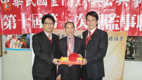 中華民國金門烈嶼公共事務協會第10屆新、卸任會長交接、第1次理監事聯席會議,以及會長、理監事暨幹部就職儀式,假新北市中和烈嶼會館及中和易牙居餐廳盛大舉行,由前任會長林永輝將協會印信、權狀、財務交由新任會長孫國欽,由新任監事主席馮國樑監交,新任秘書長洪育懷等理、監事暨幹部也同時就職。未來兩年,孫會長與全體烈嶼協會理監事暨幹部將以「責任、承擔、使命」自我期許,繼續為旅臺鄉親服務。 26日下午,中華民國金門烈嶼公共事務協會第10屆會長、理監事暨幹部交接就職典禮,到場貴賓雲集,除旅臺各縣市金門同鄉會理事長、總幹事外,福建省政府主席薛承泰、金門縣政府社會局局長方天吉、地政局局長林德恭、北區服務處主任陳永富、金門縣議員陳滄江,新北市市長朱立倫、新北市社會局局長李麗圳、永和區區長江美桃、新北市議員邱峰堯、陳錦錠、前臺北縣中和市長呂芳煙,立法委員張慶忠、林德福、陳福海國會辦公室主任章國峰、張朝凱等多位來賓均與會祝福,母鄉洪成發鄉長、呂合成秘書也特地跨海共襄盛舉。此外,立法院長王金平特派參事蔡政順到場表達祝賀之意,交接就職會場可謂是冠蓋雲集,花團錦簇,盛況空前。 省主席薛承泰致詞時首先推崇林永輝前會長,將烈嶼協會功能發揮得淋漓盡致,服務鄉親效能有目共睹;他以一副「國恩家慶永澤金門,欽賜榮耀輝映烈嶼」賀匾期許新任會長孫國欽,帶領新的服務團隊,繼續為家鄉的公共事務提供建言。新北市長朱立倫則嘉許林永輝里長,將金門精神帶到新北市的基層,擴大到里民的服務層面;他非常肯定旅臺金門鄉親在異鄉打拚、勤奮有成、團結一致的精神,未來還需要旅臺金門鄉親更努力、更團結的繼續支持政府,做政府的有力後盾。 洪成發鄉長則對烈嶼協會雖處異鄉,卻時時關心家鄉,不時提出各項興革意見表示感謝與肯定,也期望新的服務團隊繼續為家鄉鞭策與指導。方天吉與林德恭局長則轉達李縣長對於烈嶼協會支持縣政、服務鄉親、增進鄉誼的敬佩之意,也請鄉親有關金門的土地權益問題,請儘速與地政局連絡,俾利協助解決。立法院長王金平則特別指派參事蔡政順向金門鄉親轉達,對於金門大橋、金門大學、離島建設條例等所需相關預算,他絕對全力的支持,會協助化解阻力,獲得與會鄉親熱烈的掌聲。 在理監事聯席會議中,通過了中華民國金門烈嶼公共事務協會顧問聘任要點,未來將延攬各領域旅臺優秀人才納入成為協會顧問,擴大為旅臺鄉親服務層面。另為慶祝建國100年母親節,決定於今年5月8日舉行感恩研習活動,藉由慶祝母親節,宏揚母愛,激發孝親情懷,發揚中華固有文化;同時,也會配合政府適時宣導政令,達到寓教於樂之目的。會後,協會也為100年1至3月份理、監事暨幹部舉辦慶生會,為就職會場劃下歡樂圓滿的句點。